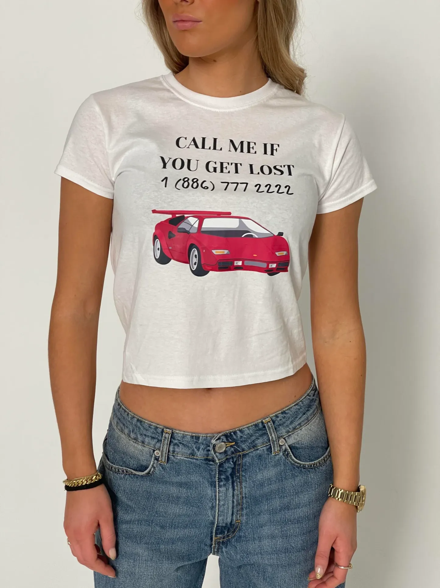 Baby tee with "Call me if you get lost" and car symbol. Our tees are from fruit of the loom and in a super soft and comfortable quality.