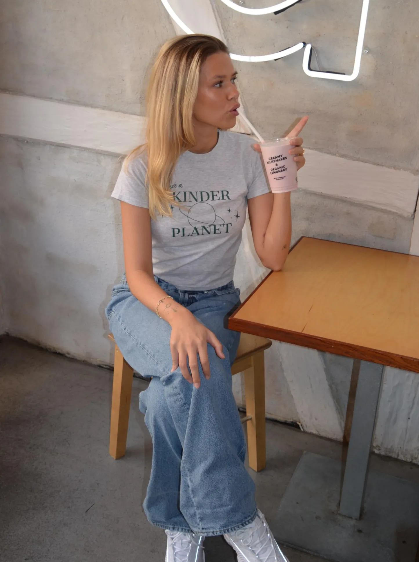 "Create a kinder planet" baby tee - grey