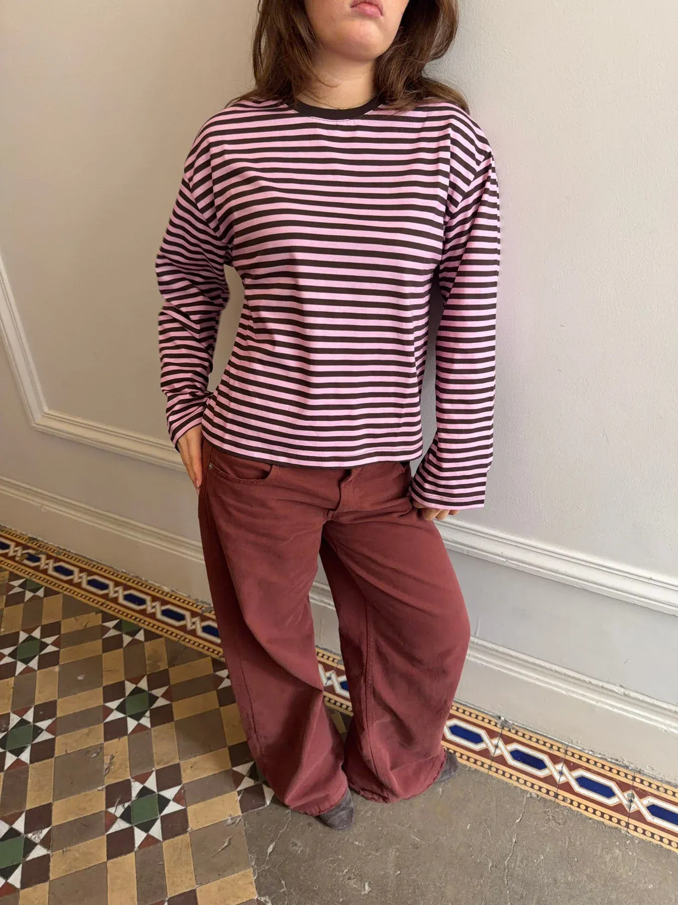 "Main character energy" blouse with stripes - Pink/brown/yellow