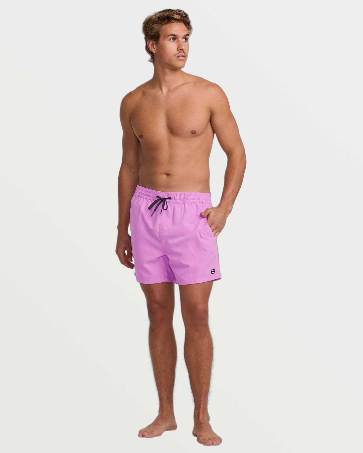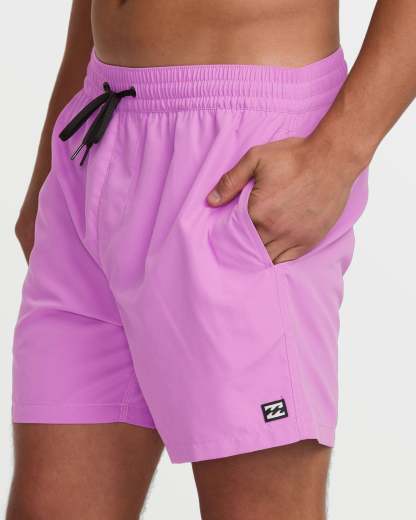 Our Billabong All Day Layback Trunks deliver top comfort and easy style in Supreme Suede. The 16" layback fit and elastic waist keep you chill, while side pockets stash essentials for beach days or laid-back everyday wear. Cool, casual, collected. Featured here in the Fuschia colorway.