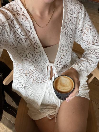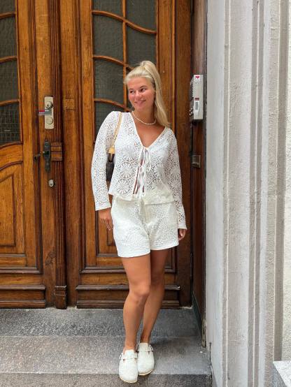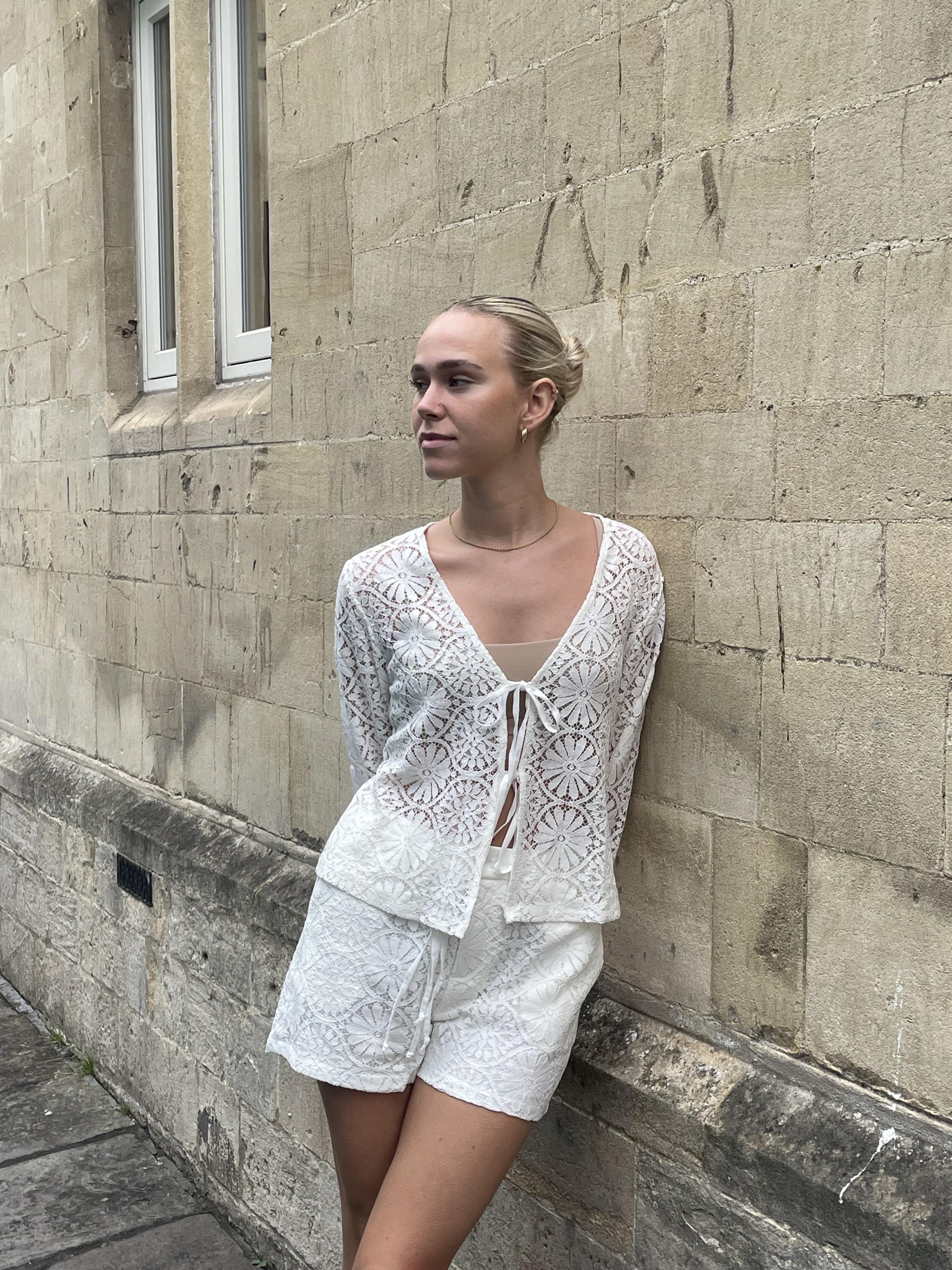 The finest lace shorts that fasten at the front and have 2 front pockets. Pair perfectly with our Angelina lace blouse!