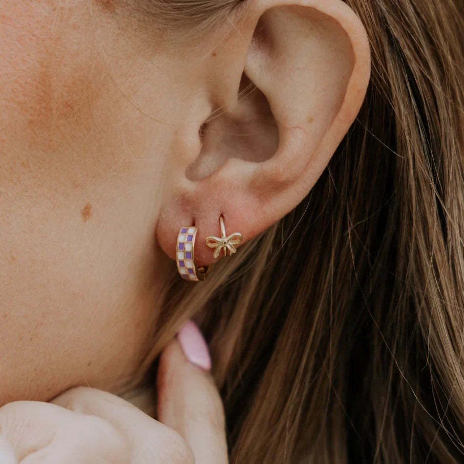 Made with comfort in mind, they’re hypoallergenic and perfect for sensitive ears - safe to wear 24/7! Ideal for a first piercing or as part of your fave earring stack, the Ava Bow Hoops are versatile little cuties you’ll reach for again and again.