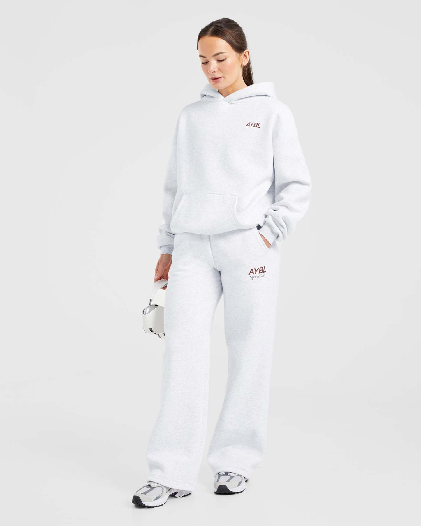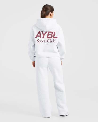AYBL Sports Club Oversized Straight Leg Joggers - Grey Marl/Burgundy