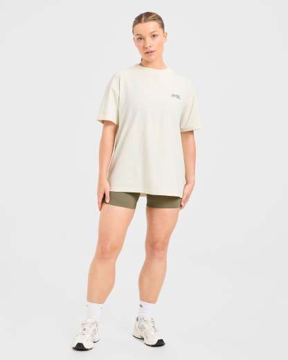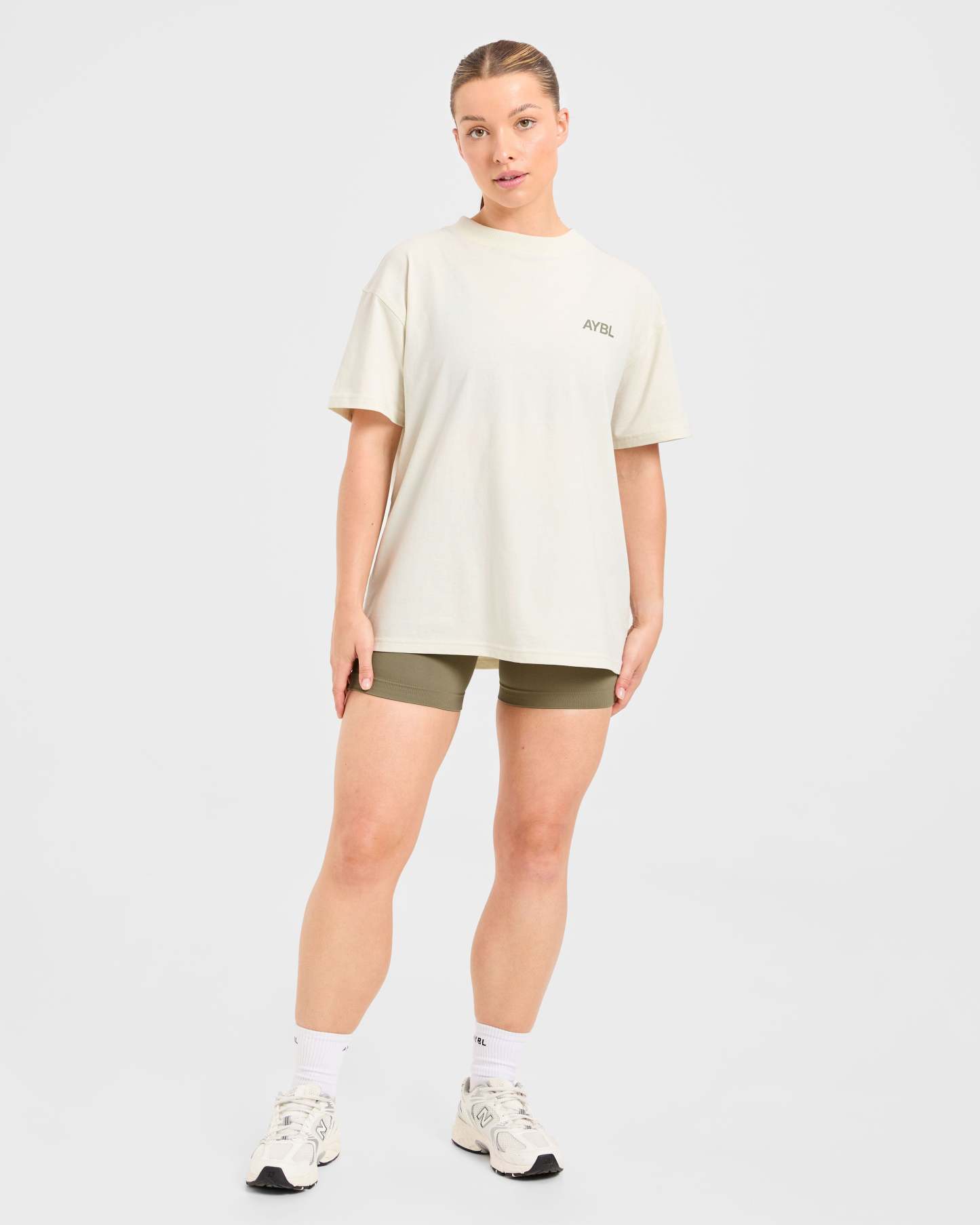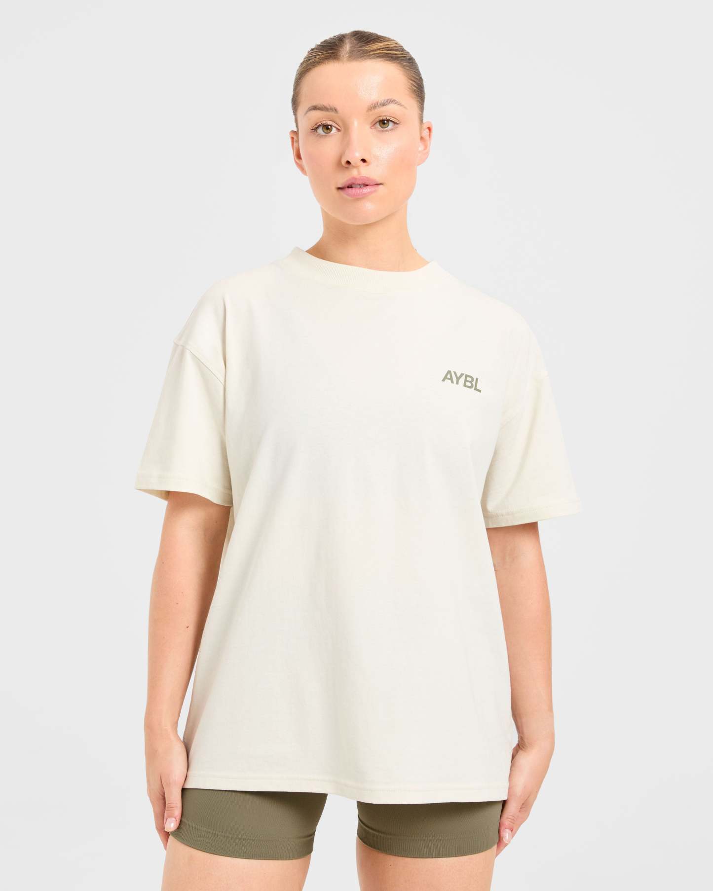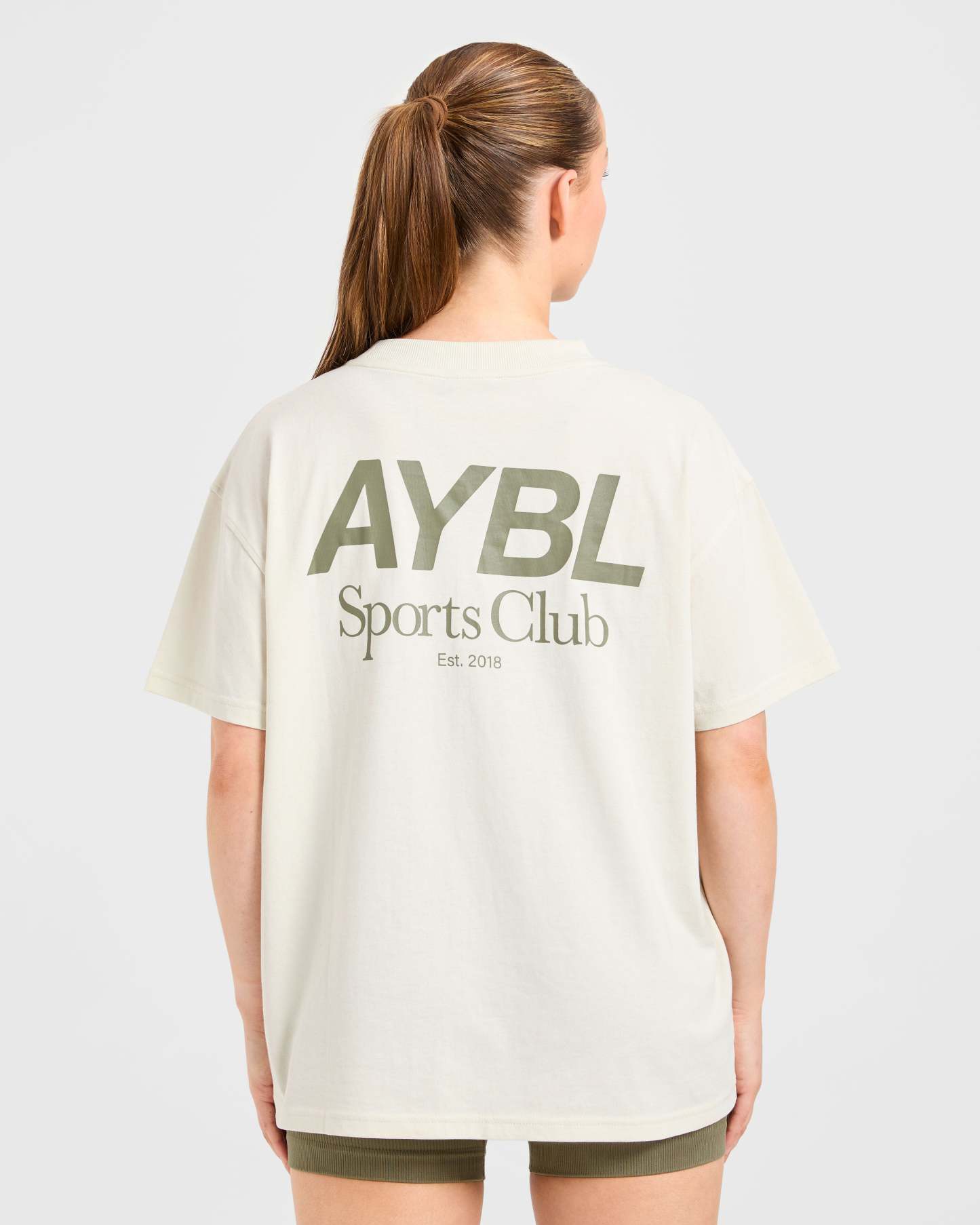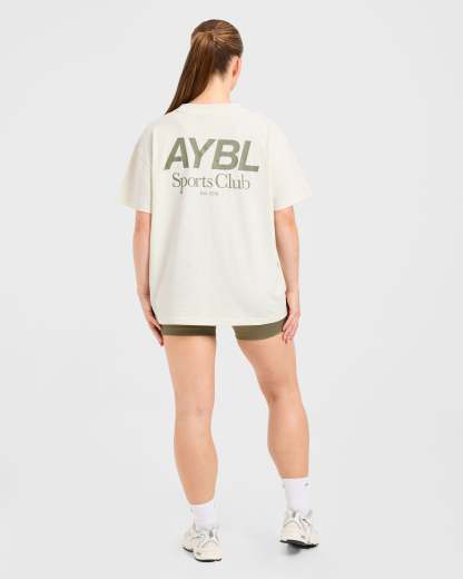 AYBL Sports Club Oversized T Shirt - Beige/Muted Olive
