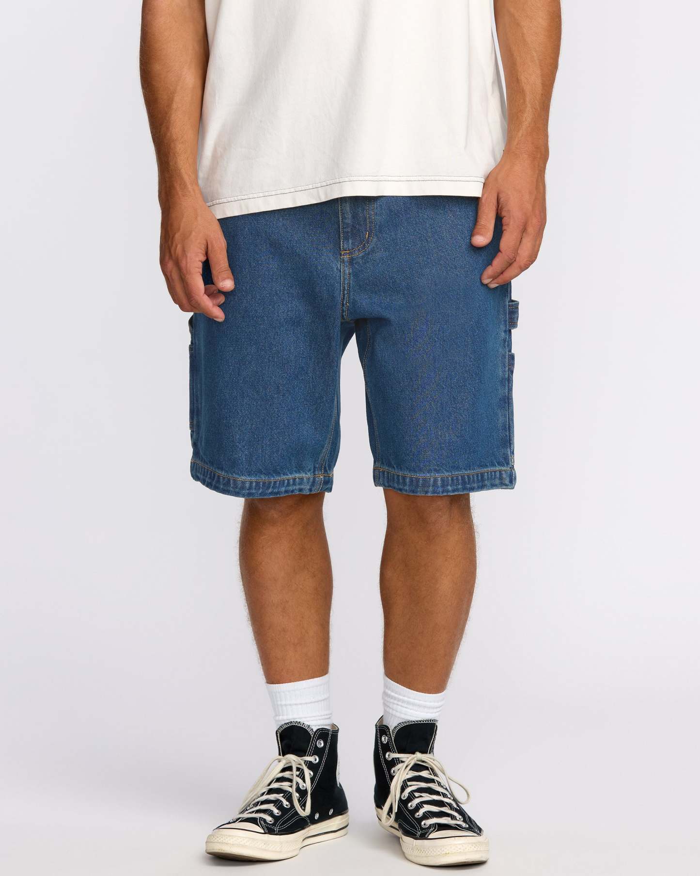 Our classic workwear shorts blend heavy-duty denim with relaxed straight-leg comfort. Five pockets, including a hidden coin pocket, plus heritage-inspired patches make these 21-inch shorts ready for anything your day brings. Featured here in the Blue colorway.