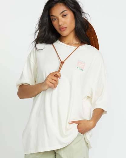 Stock up on a vintage-inspired tee that channels effortless ease. Our boxy, oversized pick is cut from 100% cotton with a lived-in look from its garment wash. Comfy knit jersey + a crew neck = perfection for throwing on with denim cutoffs or joggers. Featured here in the Whitecap colorway.
