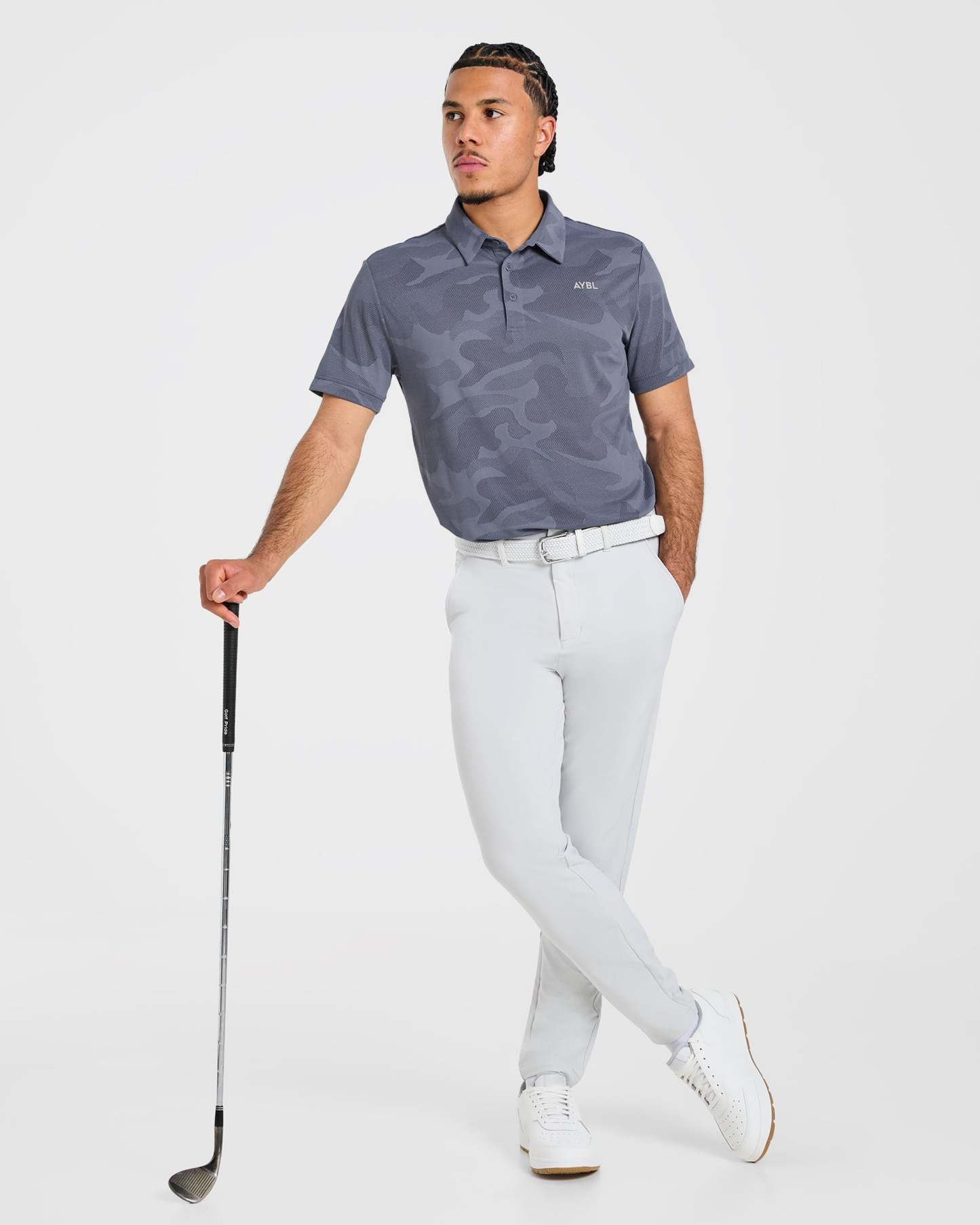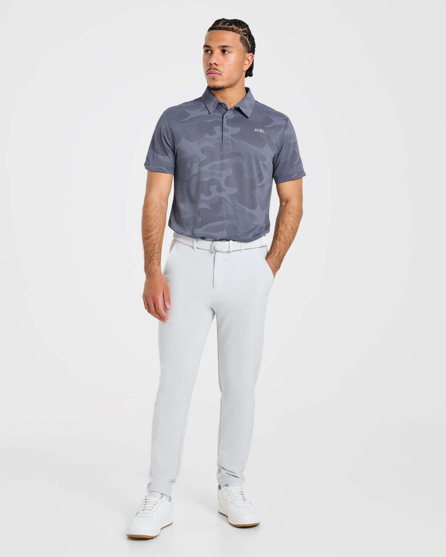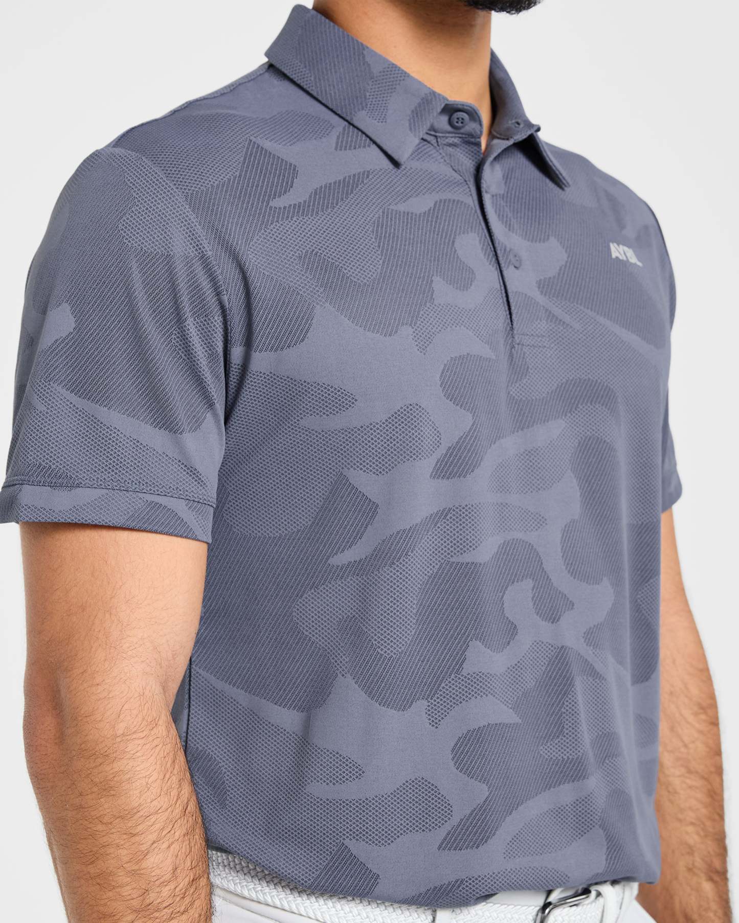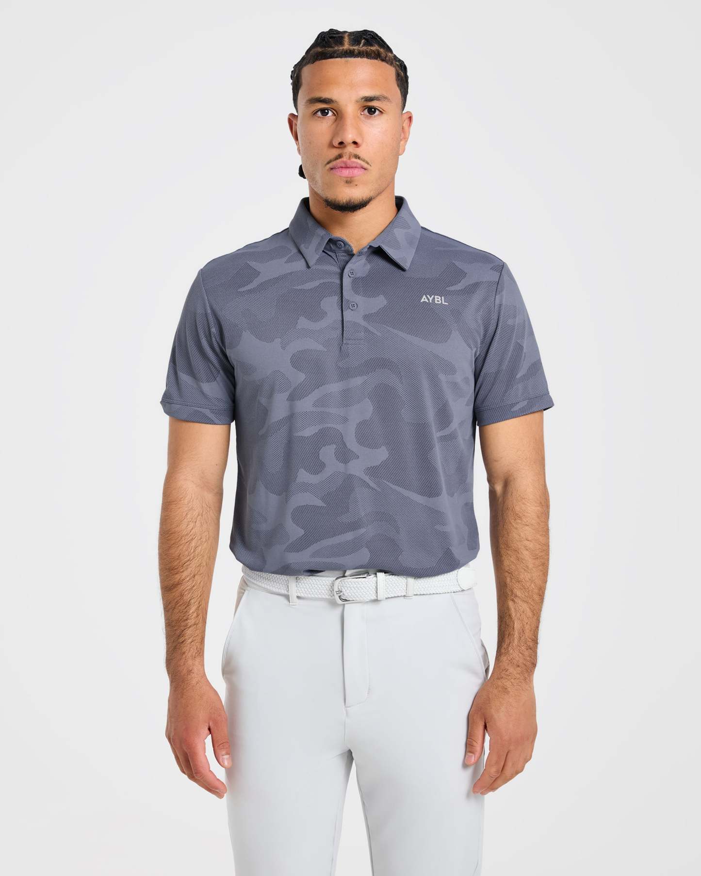 Our Camo Polo is the ultimate blend of style and functionality for the modern golfer. The soft, lightweight camo textured fabric with added stretch keeps you cool and moves effortlessly with every swing. It features a classic polo fit with short sleeves and a versatile length that can be tucked in or out. Finished with a classic collar and a button placket opening with AYBL branded buttons.