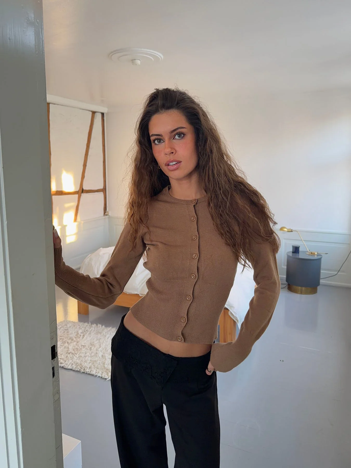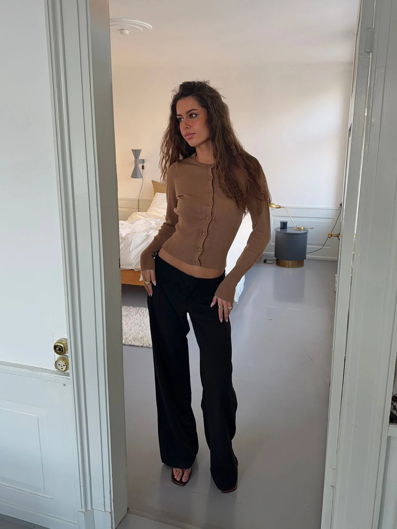 The Charlotte cardigan is a soft and timeless cardigan in a warm brown hue with a calm and modern look. The simple silhouette combined with the full button closure makes it easy to style both open and closed. The cardigan has a relaxed fit that works perfectly for layering and gives a comfortable look for both everyday wear and more casual occasions. The model is available in one size only.