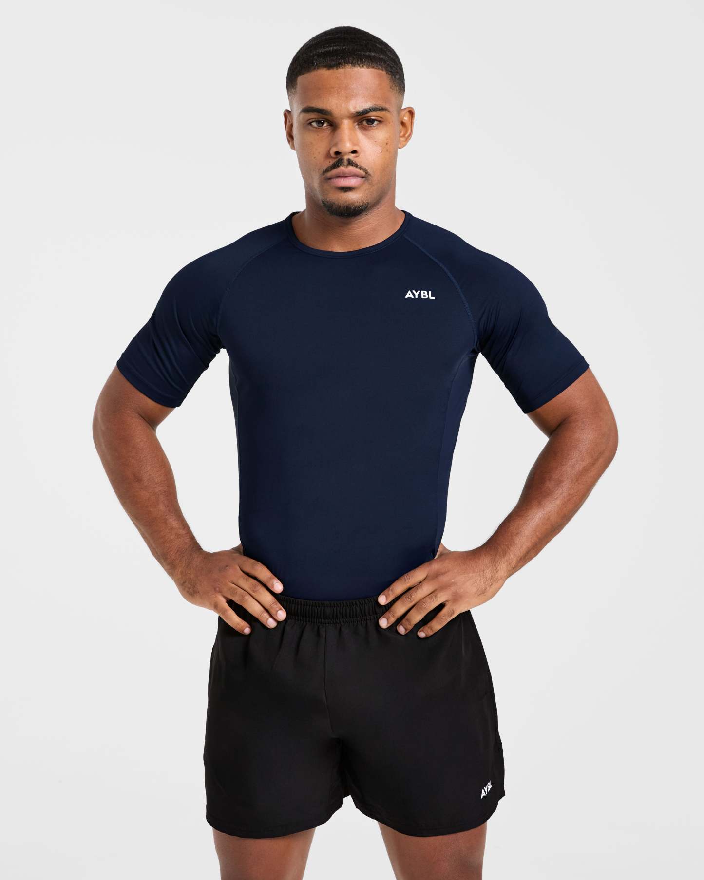 The Compression T Shirt is perfect for gym sessions, featuring a lightweight and airy fabric with stretch for ultimate comfort. Stay cool with mesh panels that provide ventilation, while the compressive body fit and fitted short sleeves show off your muscle gains.