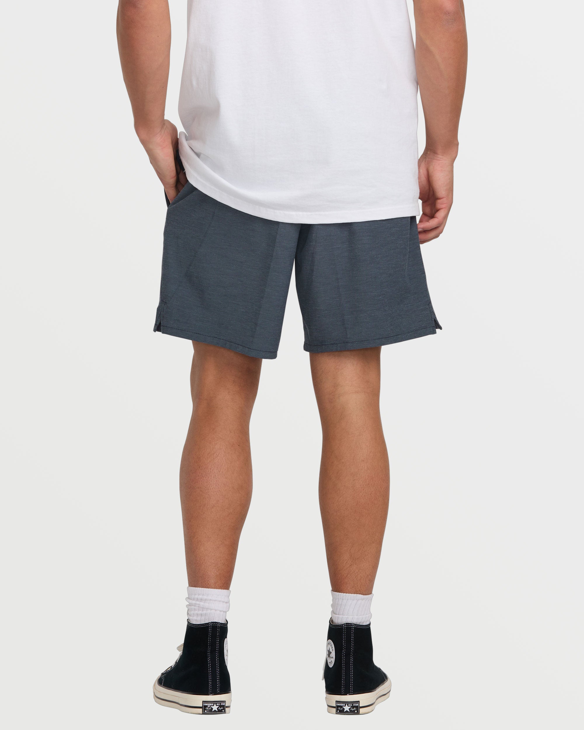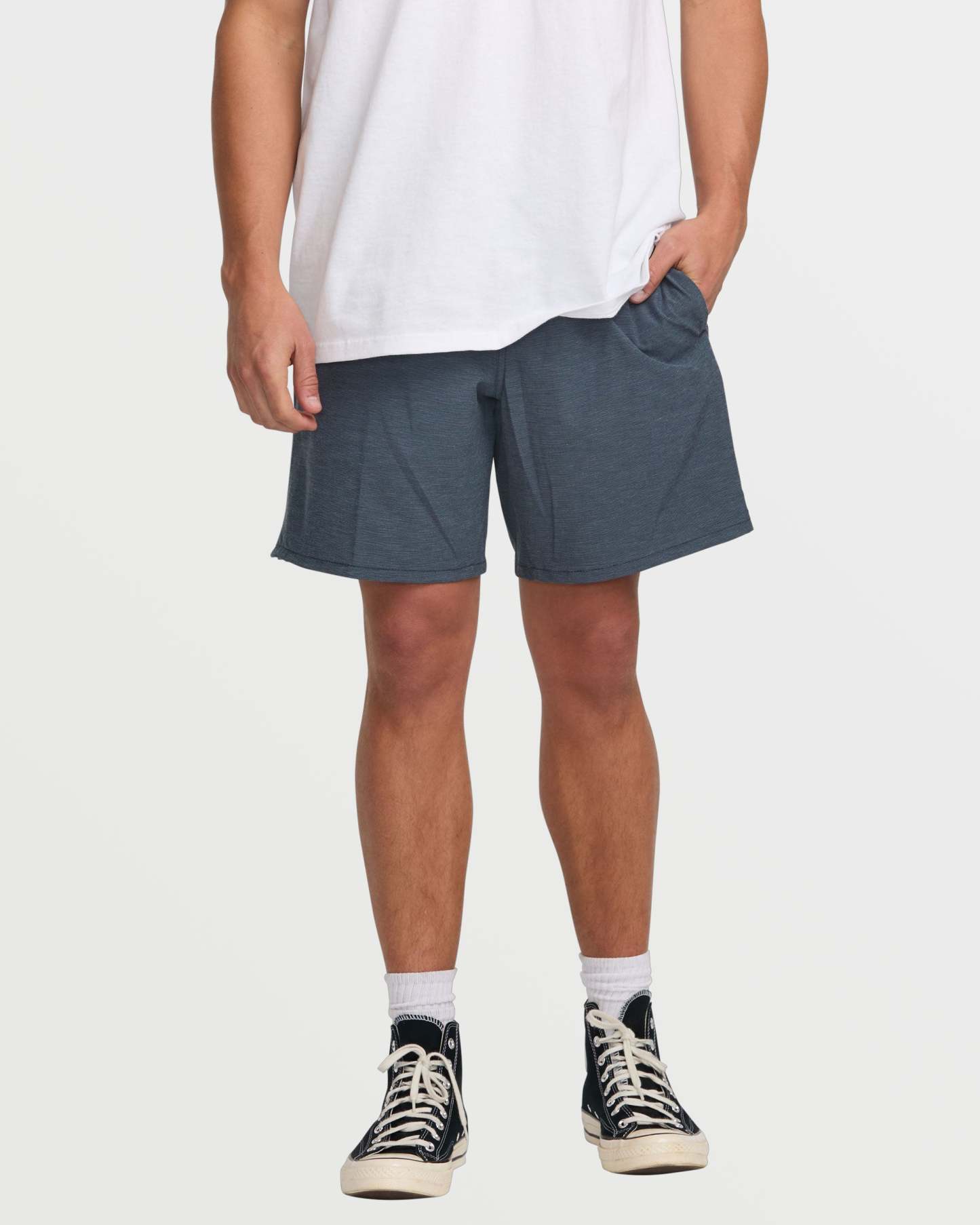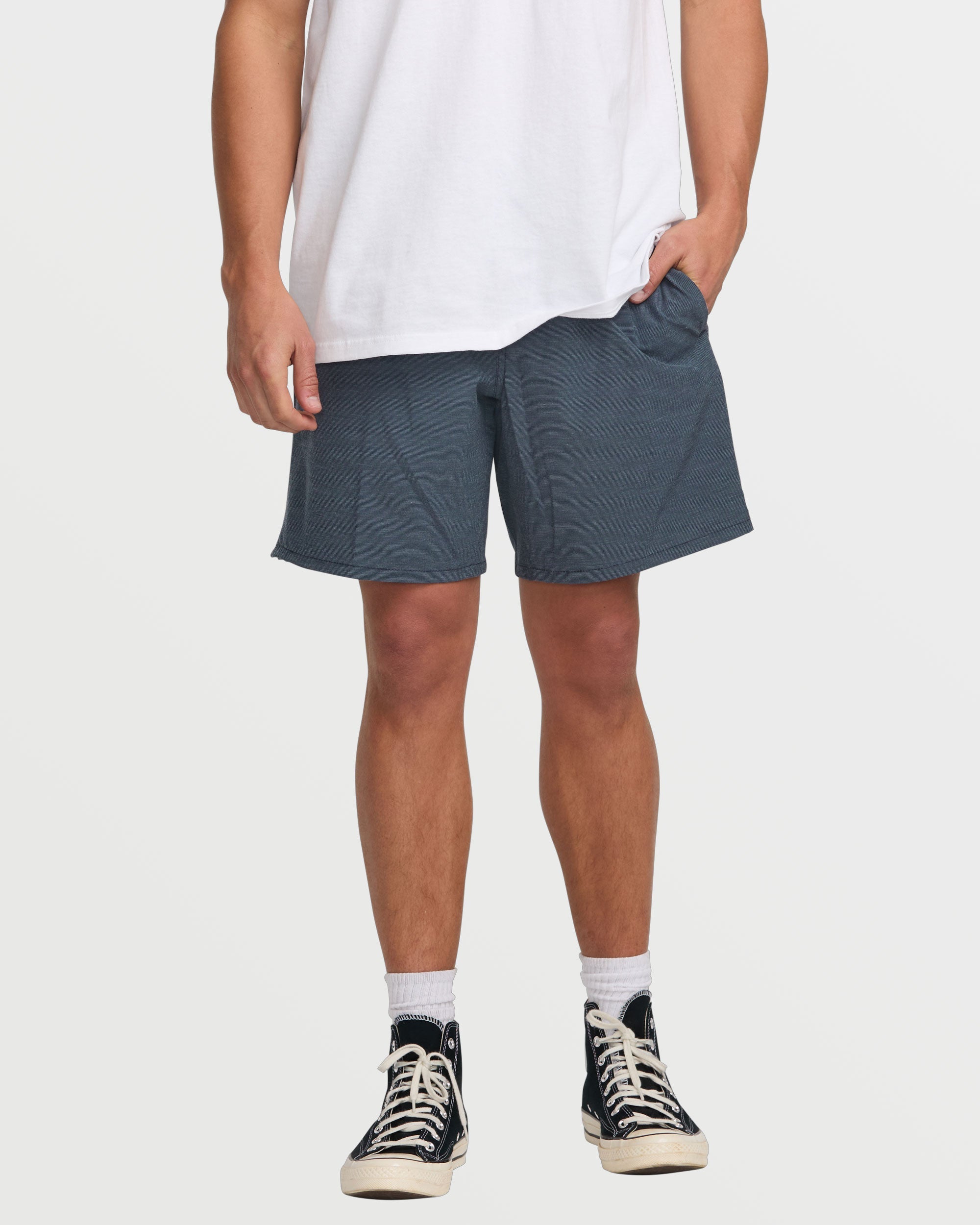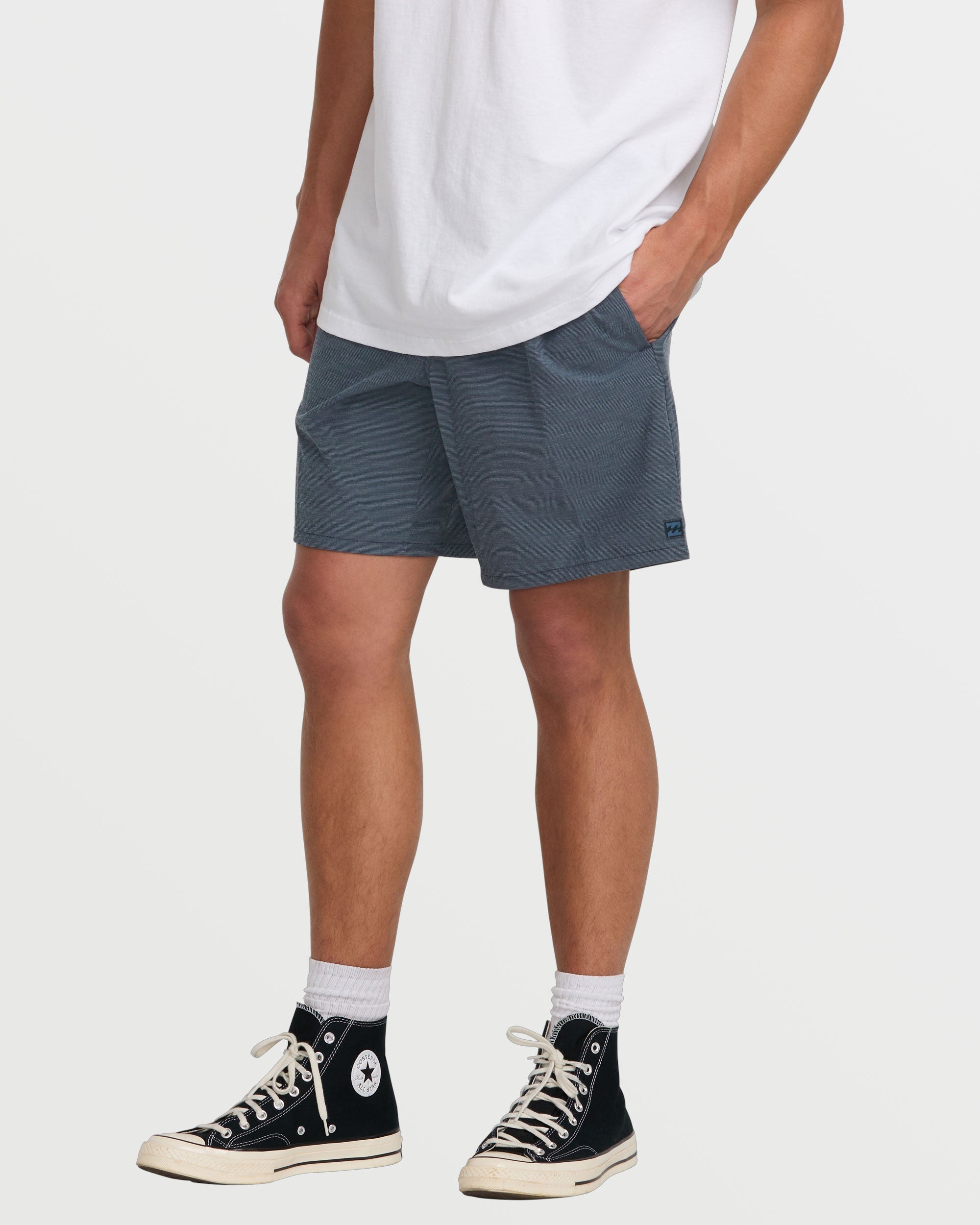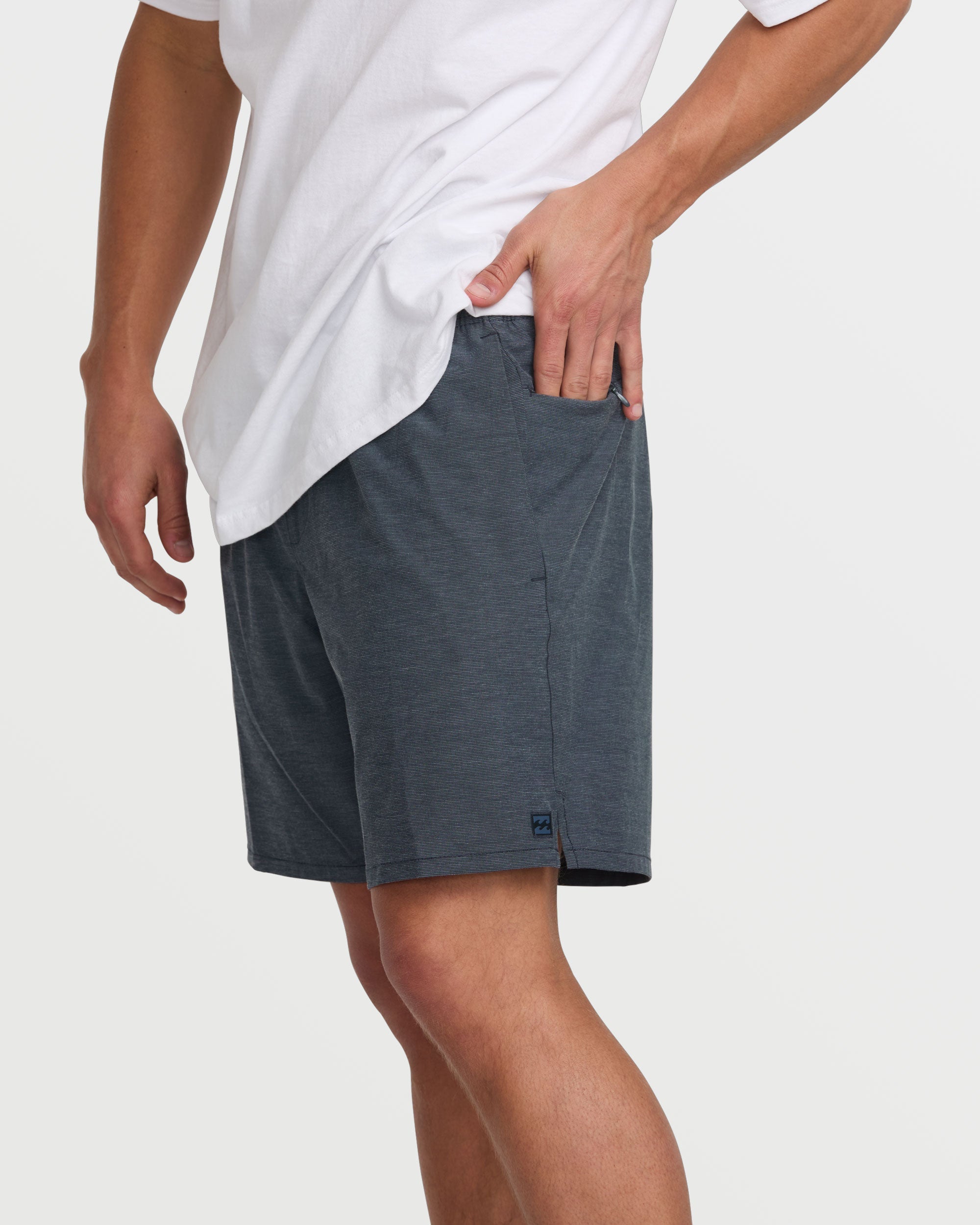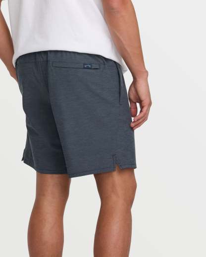 Our Billabong quick dry hybrid shorts rock a 4way stretch quad blend fabric with slub stripe oxford detailing. Side pockets, plus a secure zippered compartment let you store essentials on the move. Elastic waist with drawcord delivers custom comfort. Featured here in the Navy colorway.