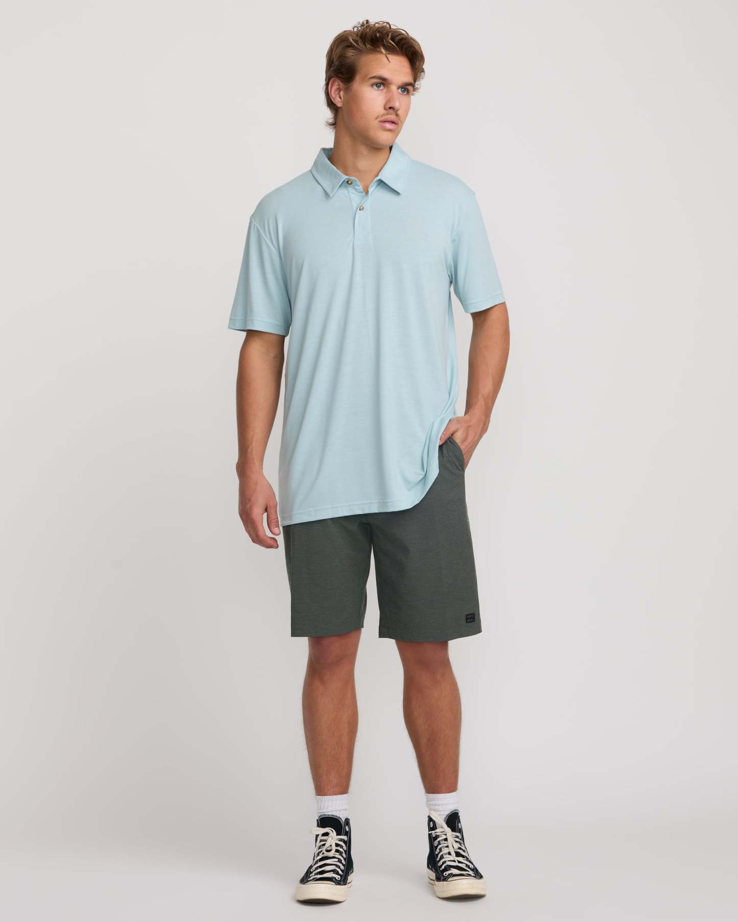 Versatile water-to-land shorts for adventure await. Crafted from quick-drying, stretchy quad blend fabric, these submersible Billabong hybrids feature a relaxed chino fit with functional pockets. Slub stripe oxford styling meets athletic performance for the ultimate seaside-to-street crossover. Featured here in the Asphalt colorway.