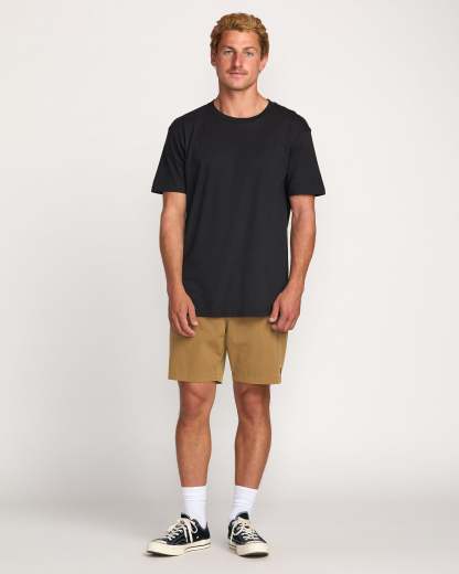 Versatile hybrid shorts with 4-way stretch cotton poly fabric move seamlessly from waves to street. Garment dyed with DWR, they feature a relaxed chino style, zipper pockets and button fly - perfect for active guys seeking modern amphibious style. Featured here in the Tobacco colorway.