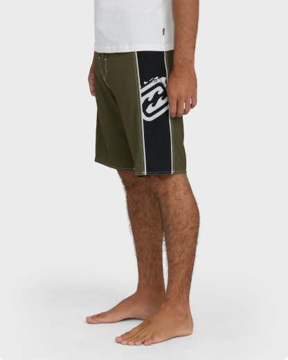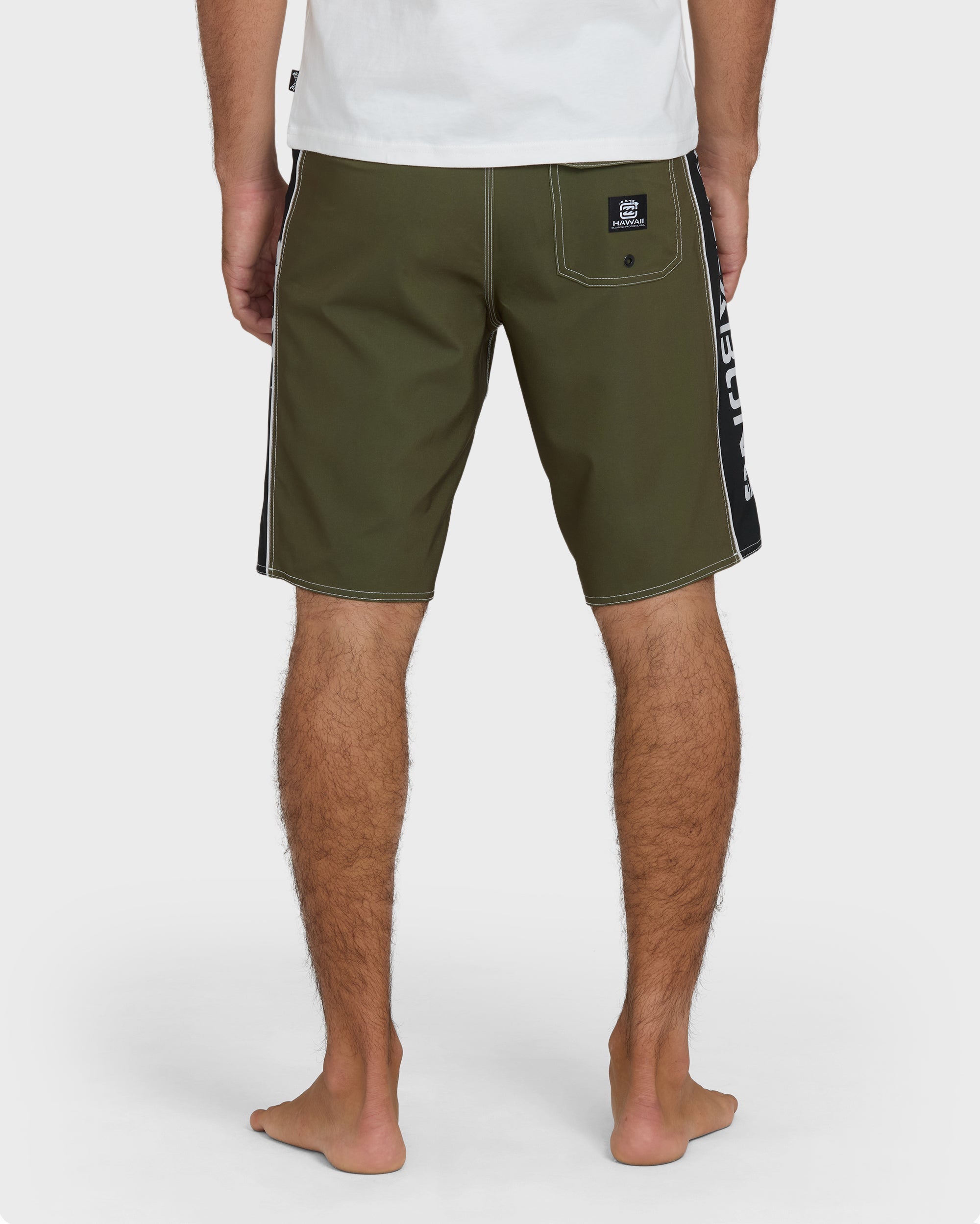 Our performance boardshorts combine four-way stretch with an 18.5-inch athletic fit. Custom printed leg panels add style, while the fixed waist and back patch pocket keep everything secure during intense sessions. Featured here in the Green colorway.
