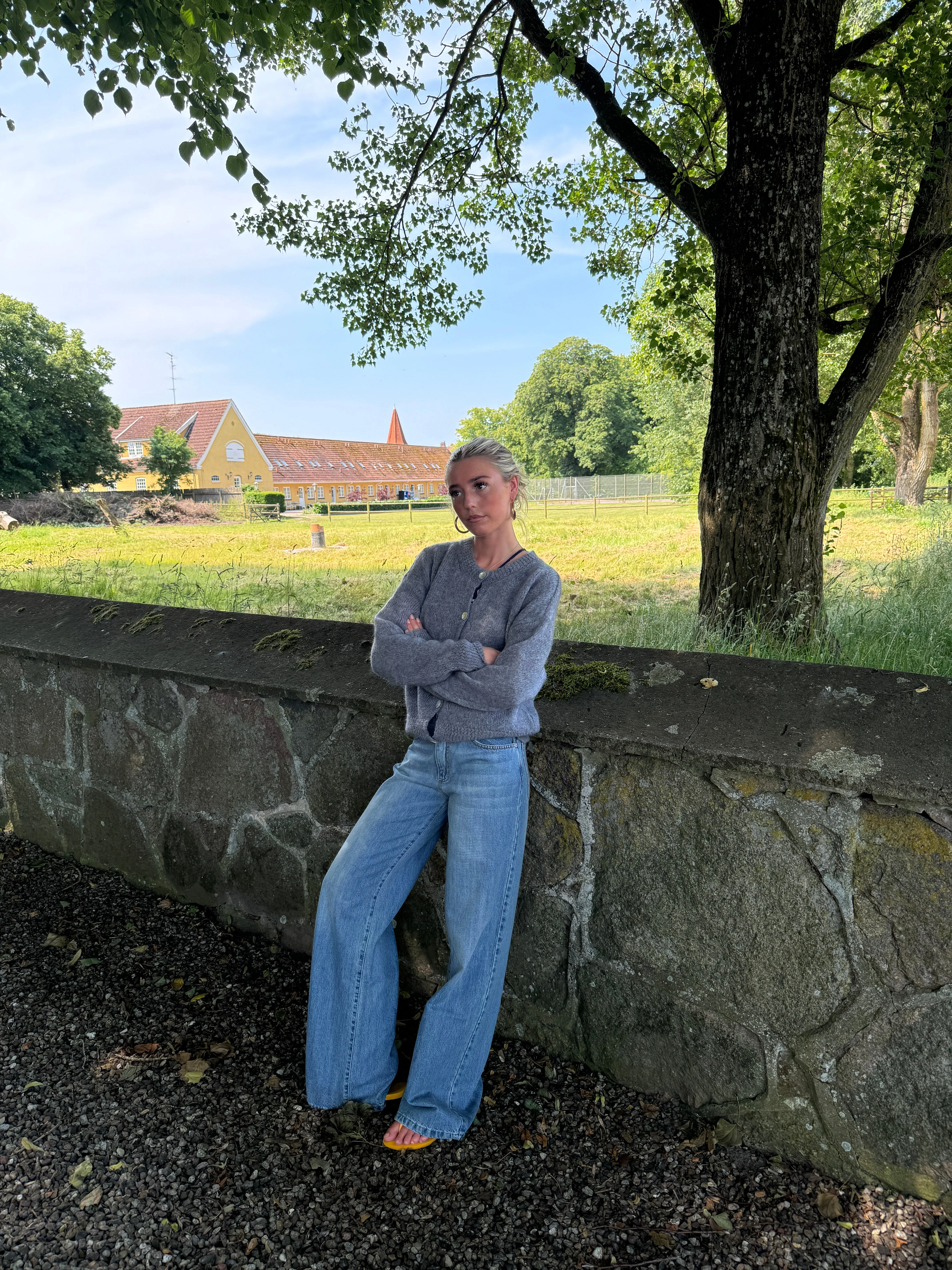 This cardigan closes with 5 buttons at the front and has a relaxed fit. It is made of the softest knit material and has a round collar. It can either be used as the main part of an outfit or over your outfit as an extra layer. Also available in pink.