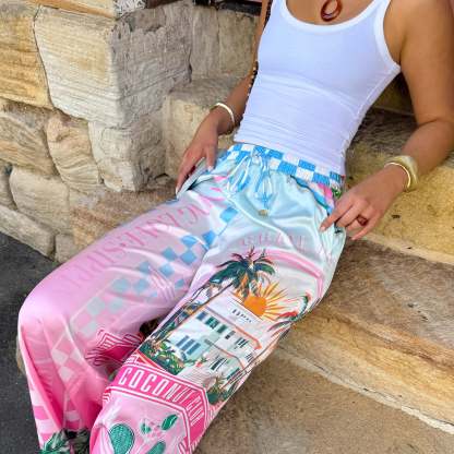 The ultimate throw-on-and-go pant for effortless summer style. Crafted from lightweight luxe satin, these pants are as cool to wear as they are chic. Dress up with strappy heels and a crop top or keeping it casual with sneakers and a white tee, the Drawstring Resort Pant offers versatility and comfort.