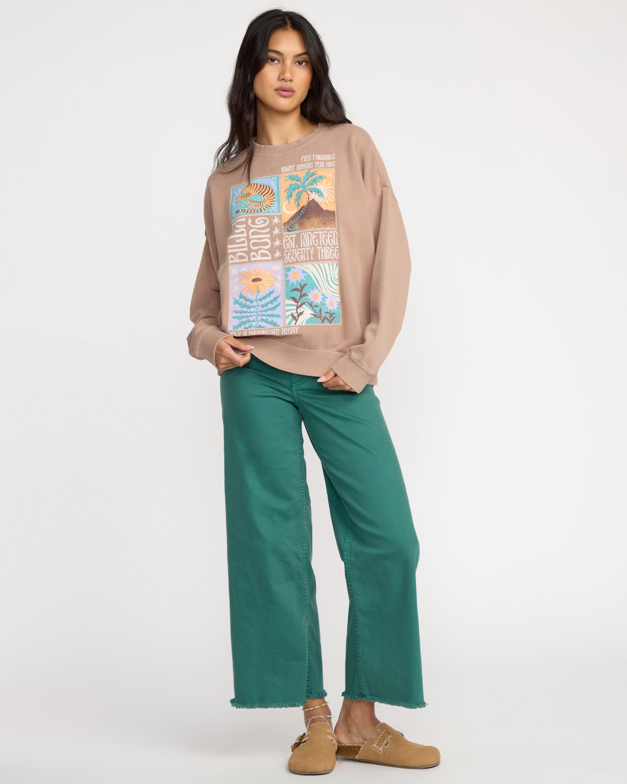 Our soft, brushed fleece Echo Crewneck Sweatshirt brings laid-back style to your everyday wardrobe. The oversized fit and garment-dyed finish create that perfectly lived-in feel you'll reach for again and again. Featured here in the Beige colorway.