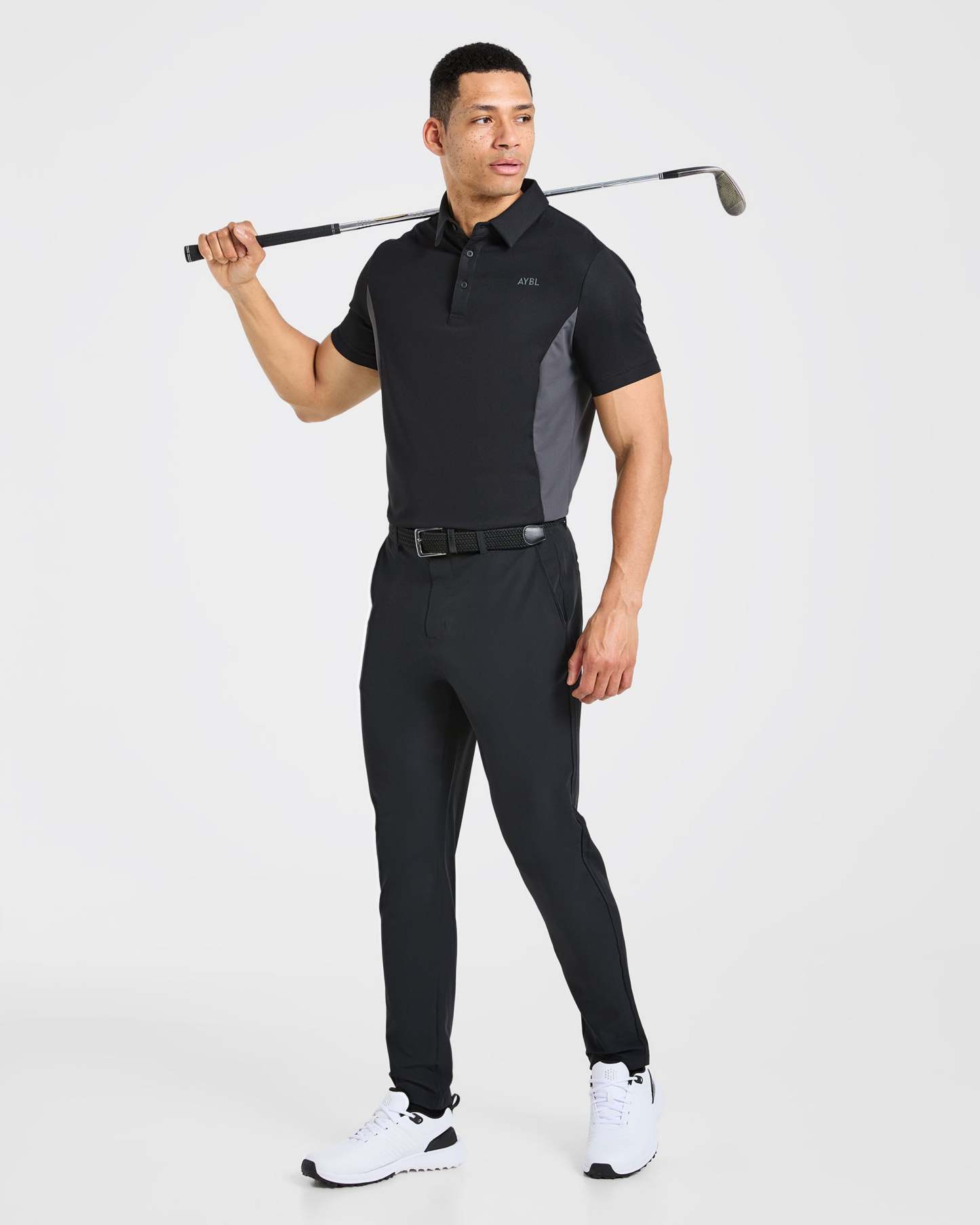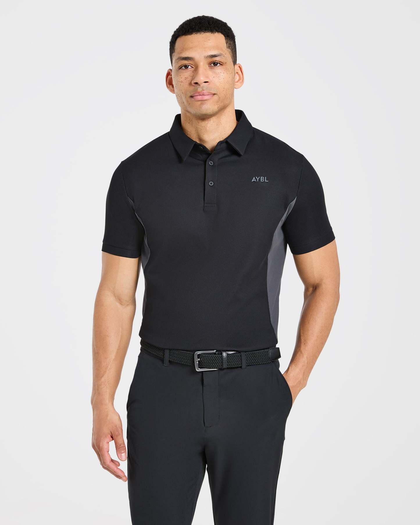 Our Edge Polo is the ultimate blend of style and functionality for the modern golfer. The soft, lightweight textured fabric with added stretch keeps you cool and moves effortlessly with every swing. It features a classic polo fit with short sleeves and a versatile length that can be tucked in or out. Finished with clean cut panelling detail, a classic collar and a button placket opening with AYBL branded buttons.