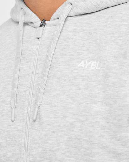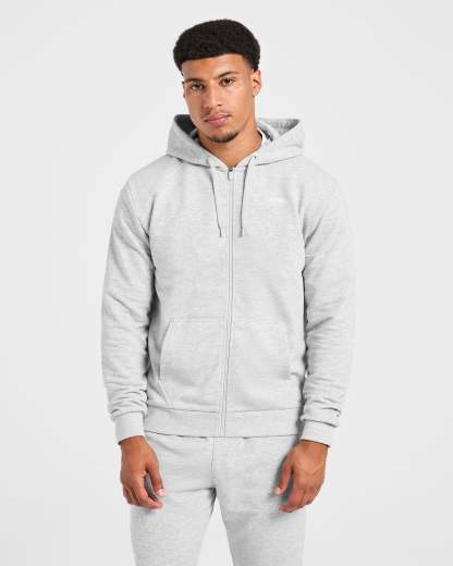 Essential Lightweight Zip Up Hoodie - Grey Marl