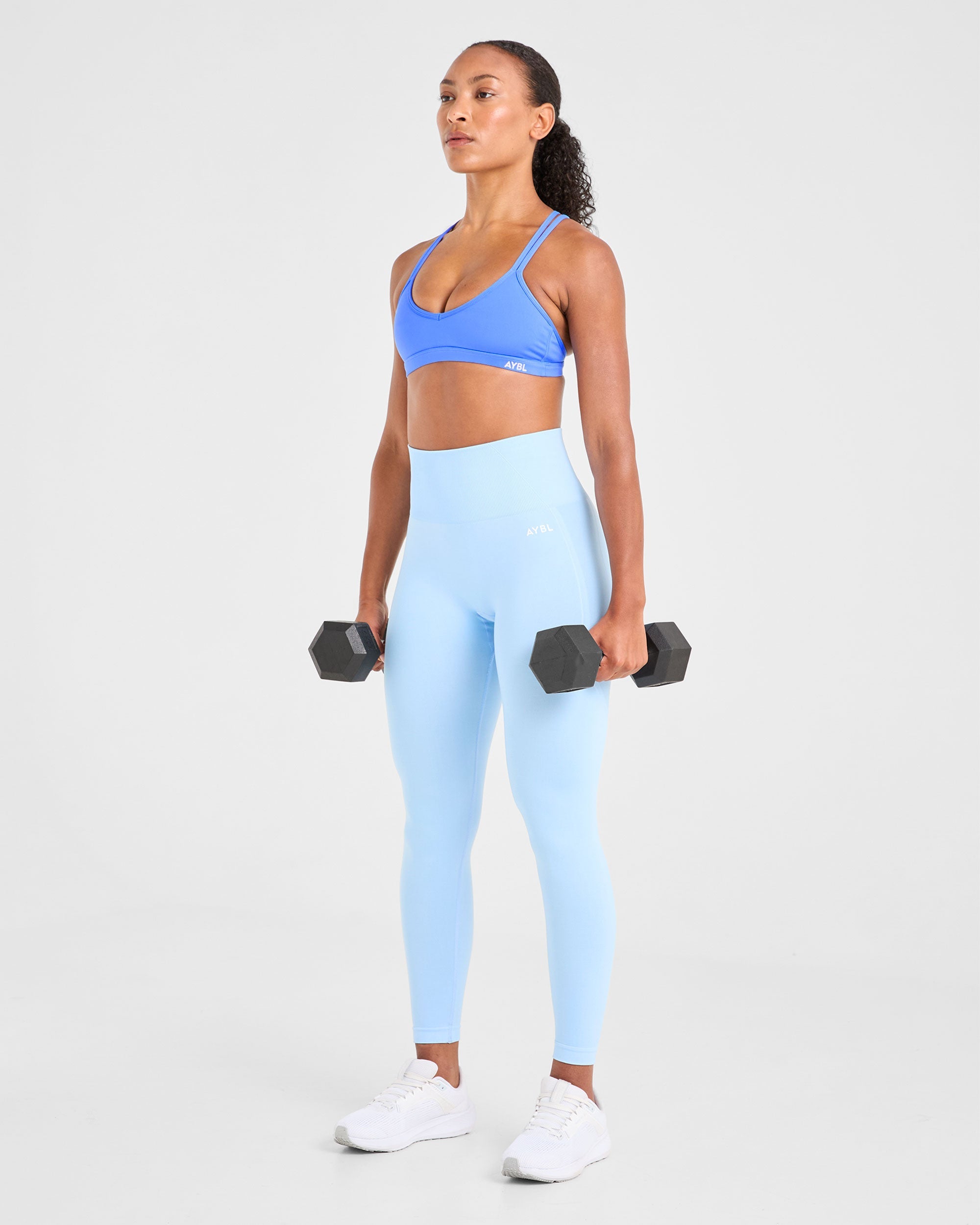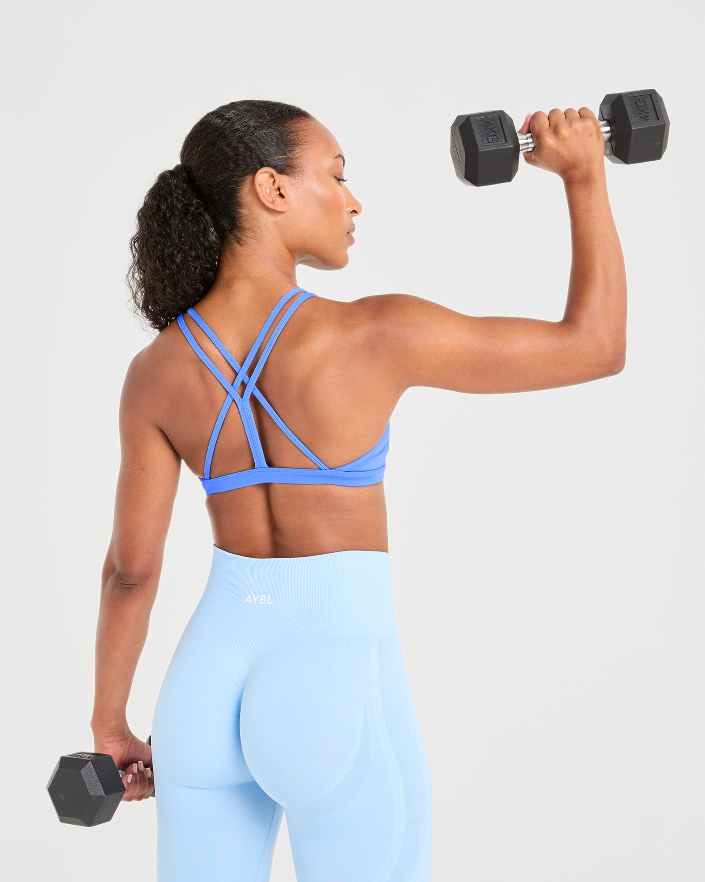 Strive towards your best performance yet with the Essential Strappy Sports Bra. The strappy back detailing ensures you feel cool and comfortable while showing off your hard-earned back gains. The flattering v neckline and AYBL logo to the front of waistband add a touch of detail to this wardrobe staple.