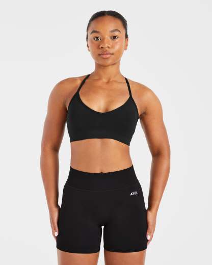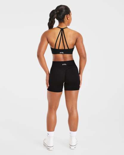 Lift with no limits in the Essential V Neck Strappy Sports Bra, featuring flattering v neck shaping and cross over back strap detailing, and finished off with AYBL logo to back. Layer under one of our tees or pair with your favourite AYBL leggings or shorts for effortless style and functionality.