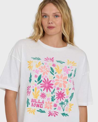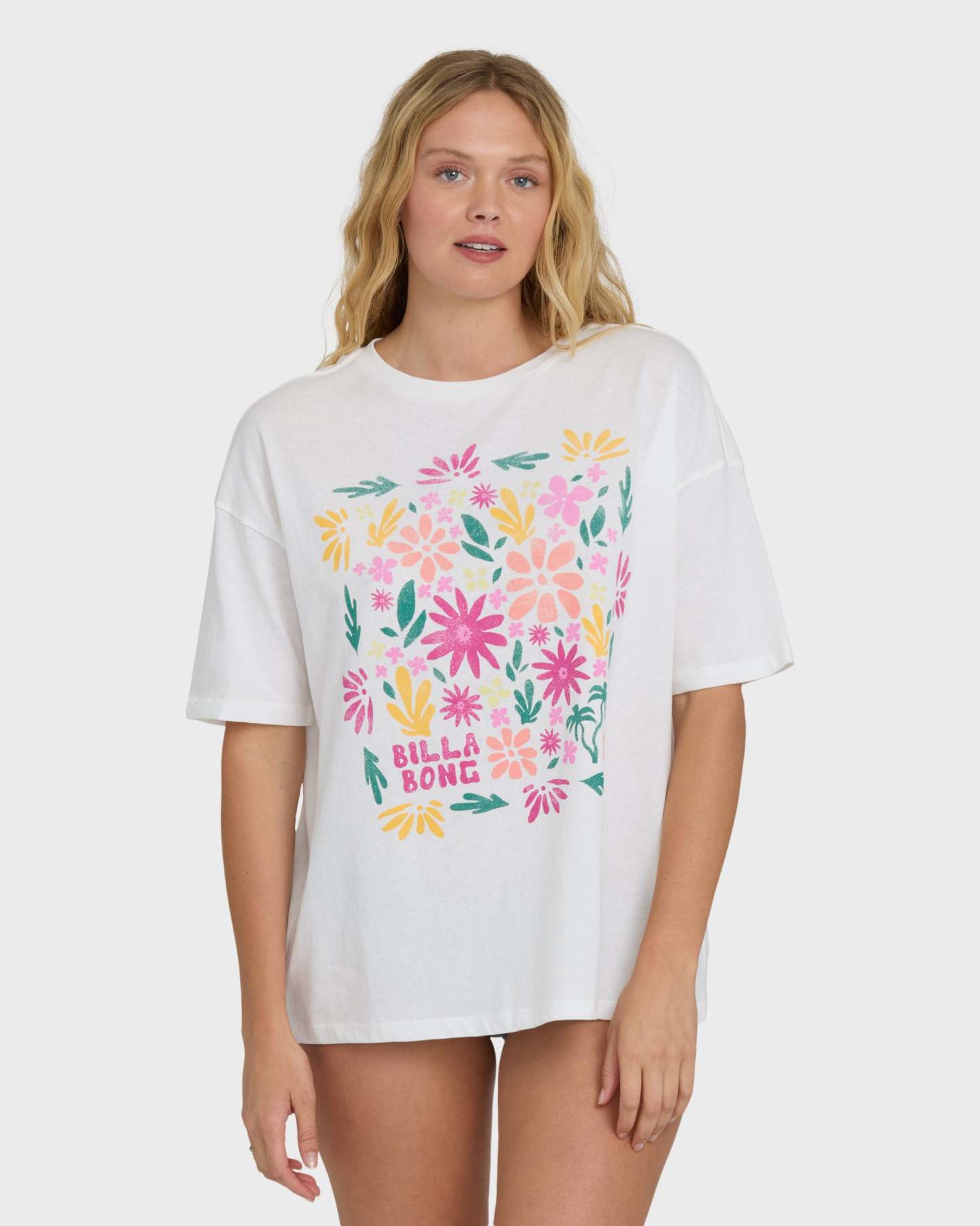 Our retro-inspired tee brightens any day with handdrawn flowers in vivid pink, orange, yellow and green. The relaxed fit and lightweight fabric pair perfectly with the soft cream base for effortless warm-weather style. Featured here in the White colorway.