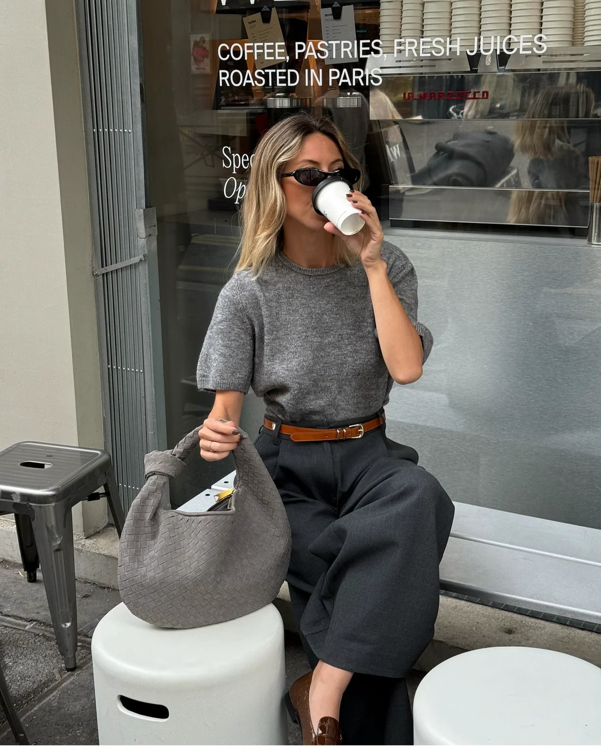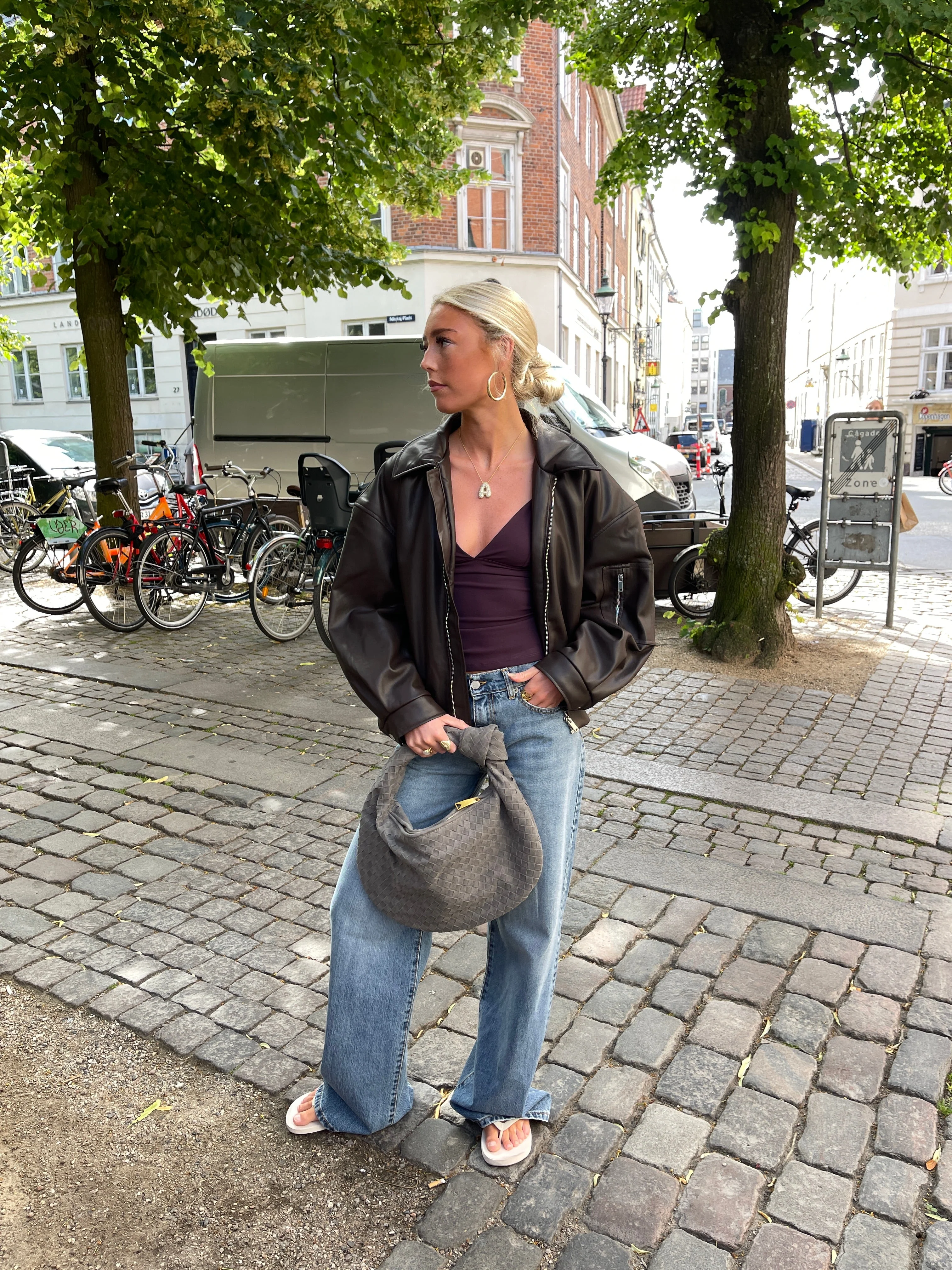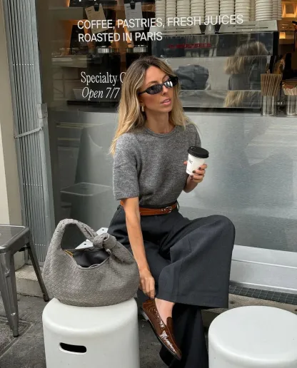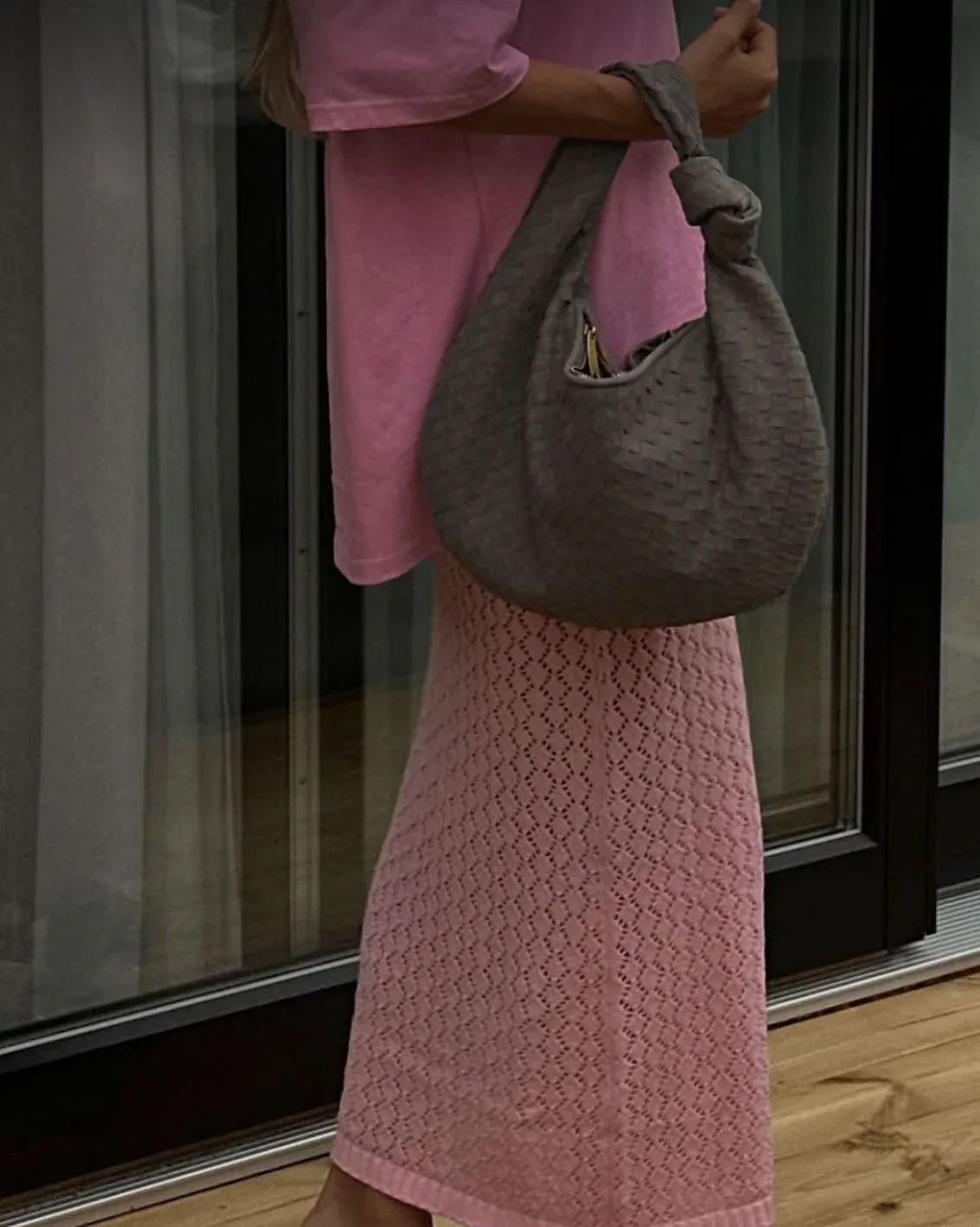 Our Florence shoulder bag in a new suede version. The bag features a round shape with a woven/plaited design and knot detail. It has a spacious main compartment with a zipper closure, and a smaller zippered pocket inside. Perfect for a day out in the city or for everyday use.