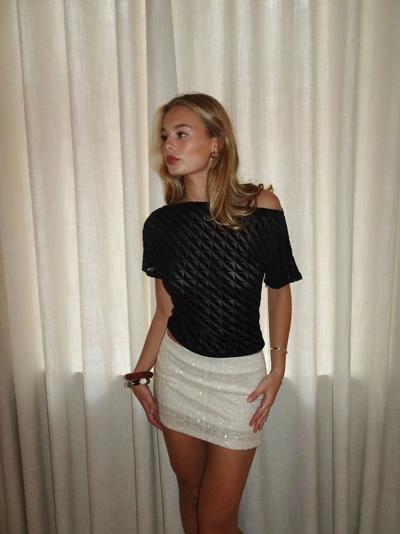 Our Florine T-shirt is both form-fitting and elegant. It exudes a simple yet sophisticated vibe while featuring a unique twist, making it perfect for those seeking a classic look with an exclusive touch.