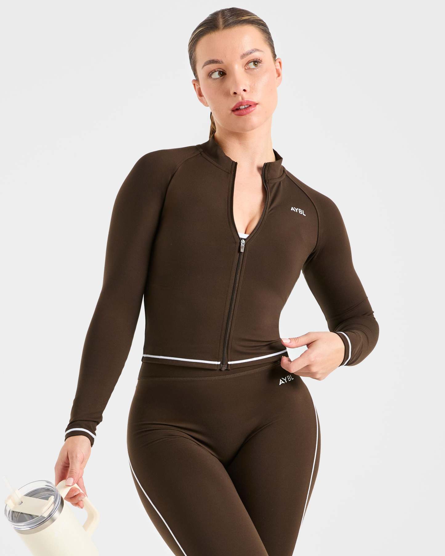 The Form Zip Up Jacket is your go-to for flattering style in and out of the gym. The soft and buttery four way stretch fabric offers a sculpting fit, with the hip length designed to perfectly sit over the waistband of your leggings. It features a high neck and long sleeves, with contrast stitching and a secure lock zip closure. Complete your athleisure look with the Form Leggings/Joggers.