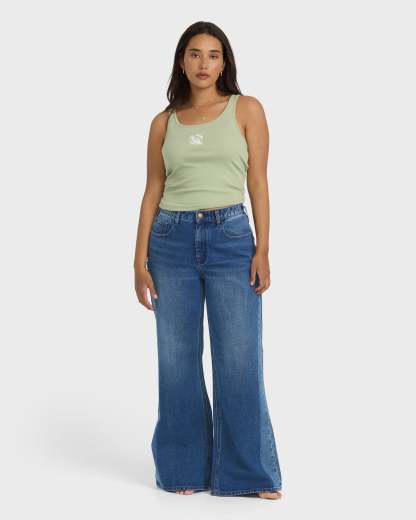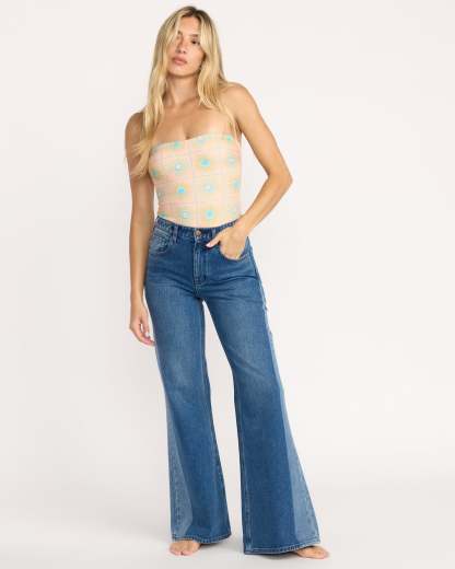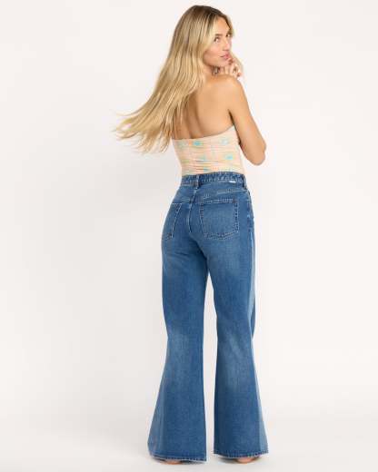 Free Fall High-Waist Denim Flare Pants - Middle Broken Blue