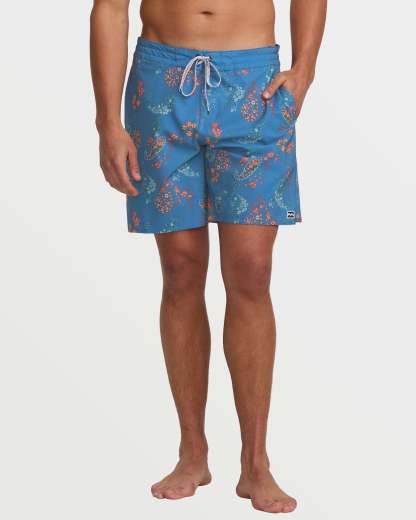Lightweight yet durable poly-cotton stretch boardshorts with a versatile 18" lo tide length. Featuring handy back patch and side seam pockets, plus a secure drawstring waist, these Billabong shorts were made for endless summer adventures. Featured here in the Bay Blue colorway.