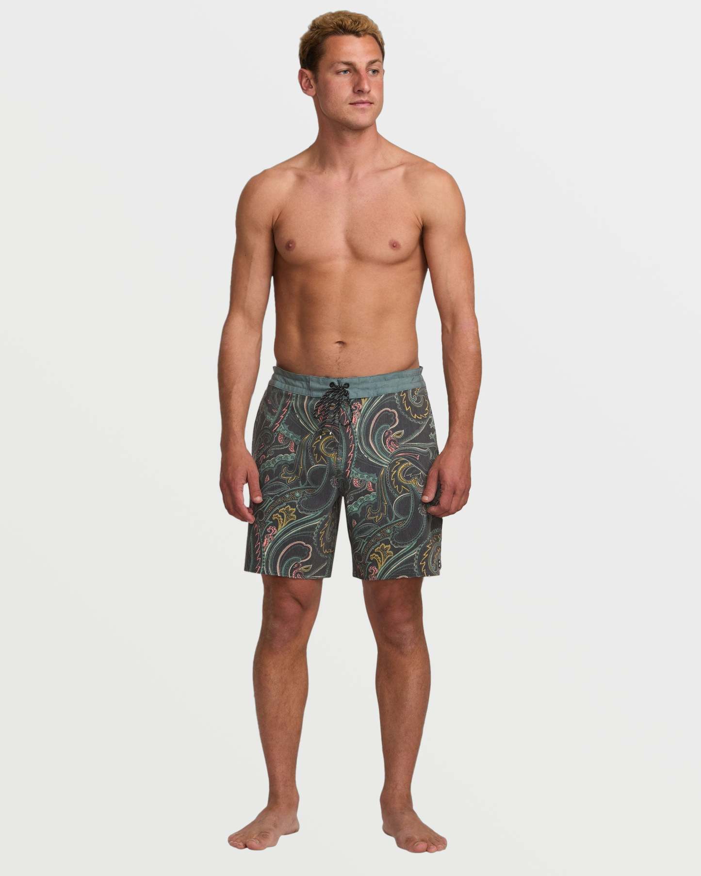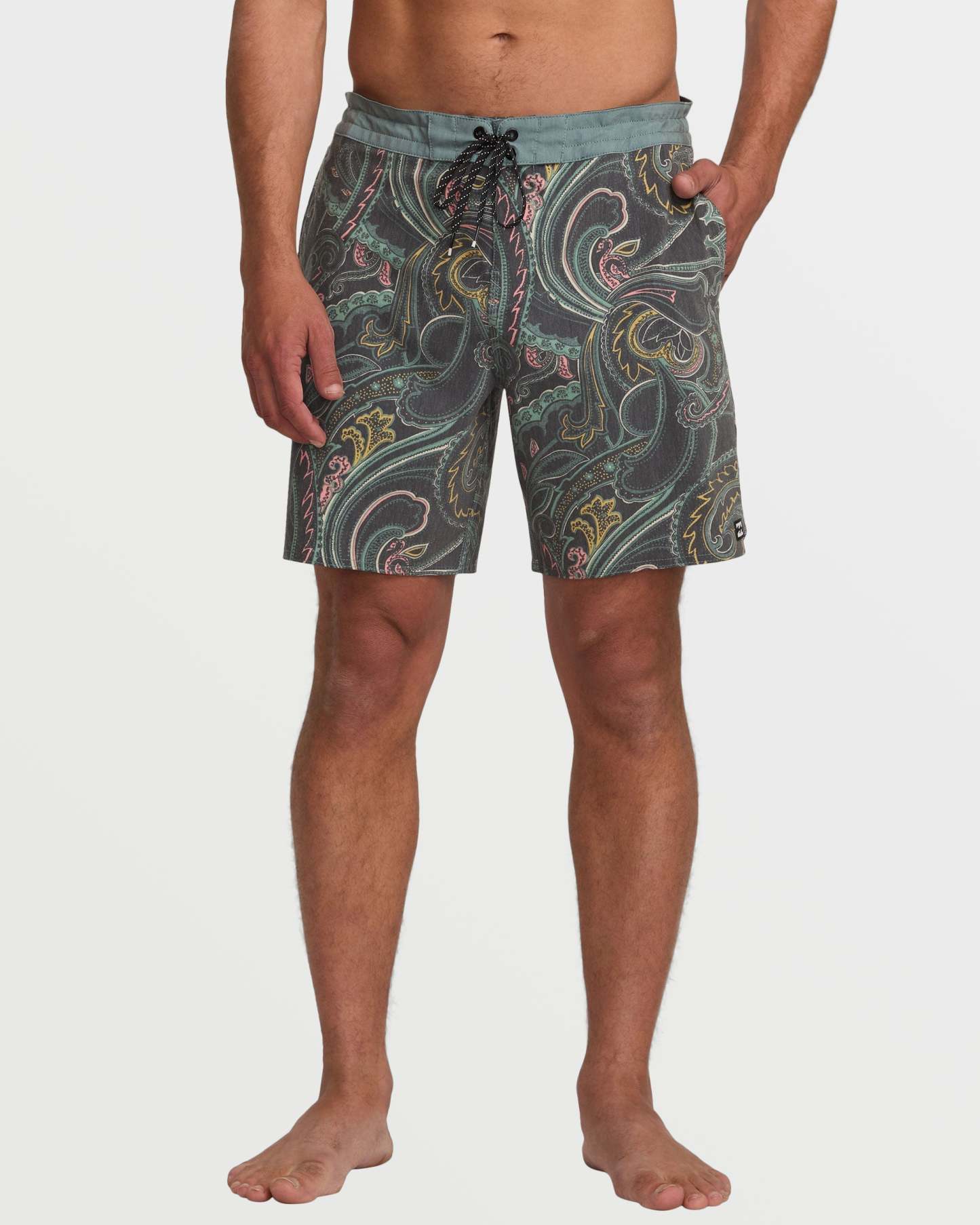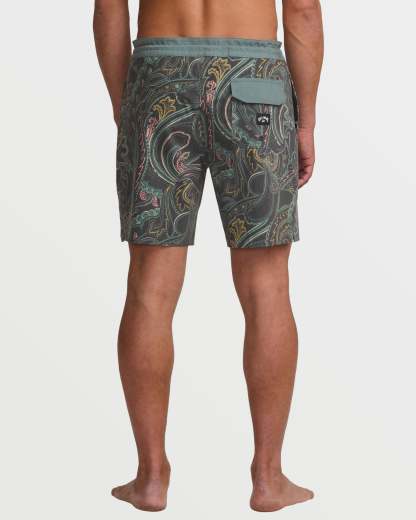 Lightweight yet durable poly-cotton stretch boardshorts with a versatile 18" lo tide length. Featuring handy back patch and side seam pockets, plus a secure drawstring waist, these Billabong shorts were made for endless summer adventures. Featured here in the Dark Slate colorway.
