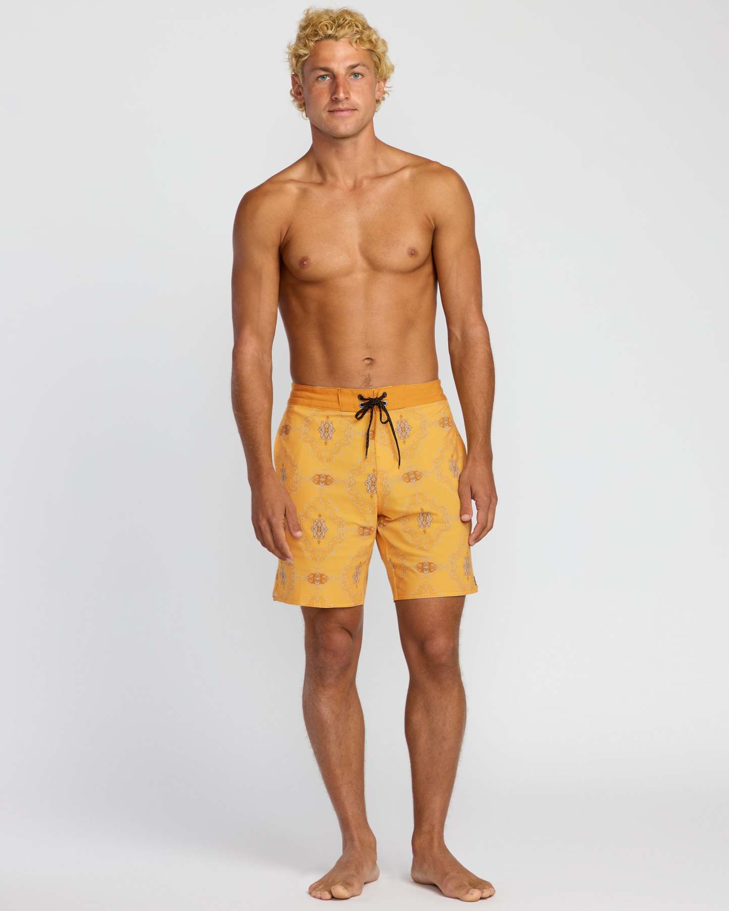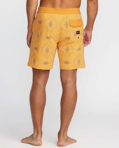 Lightweight yet durable poly-cotton stretch boardshorts with a versatile 18" lo tide length. Featuring handy back patch and side seam pockets, plus a secure drawstring waist, these Billabong shorts were made for endless summer adventures. Featured here in the Dust Yellow colorway.