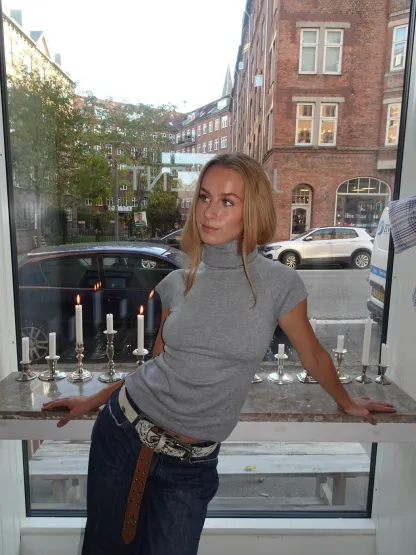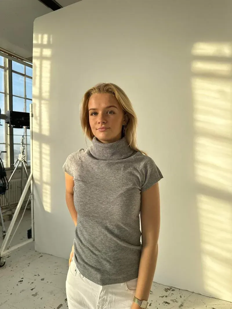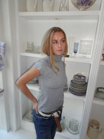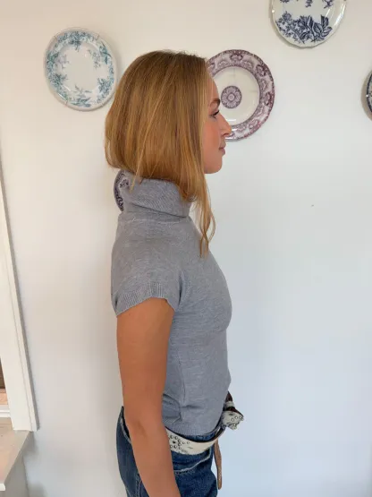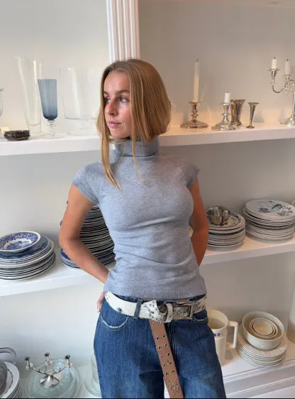 This blouse is made from the softest and most comfortable material. The blouse has short sleeves with the finest ribbed detail. It is made with a high neck, which gives the blouse a different and unique look.