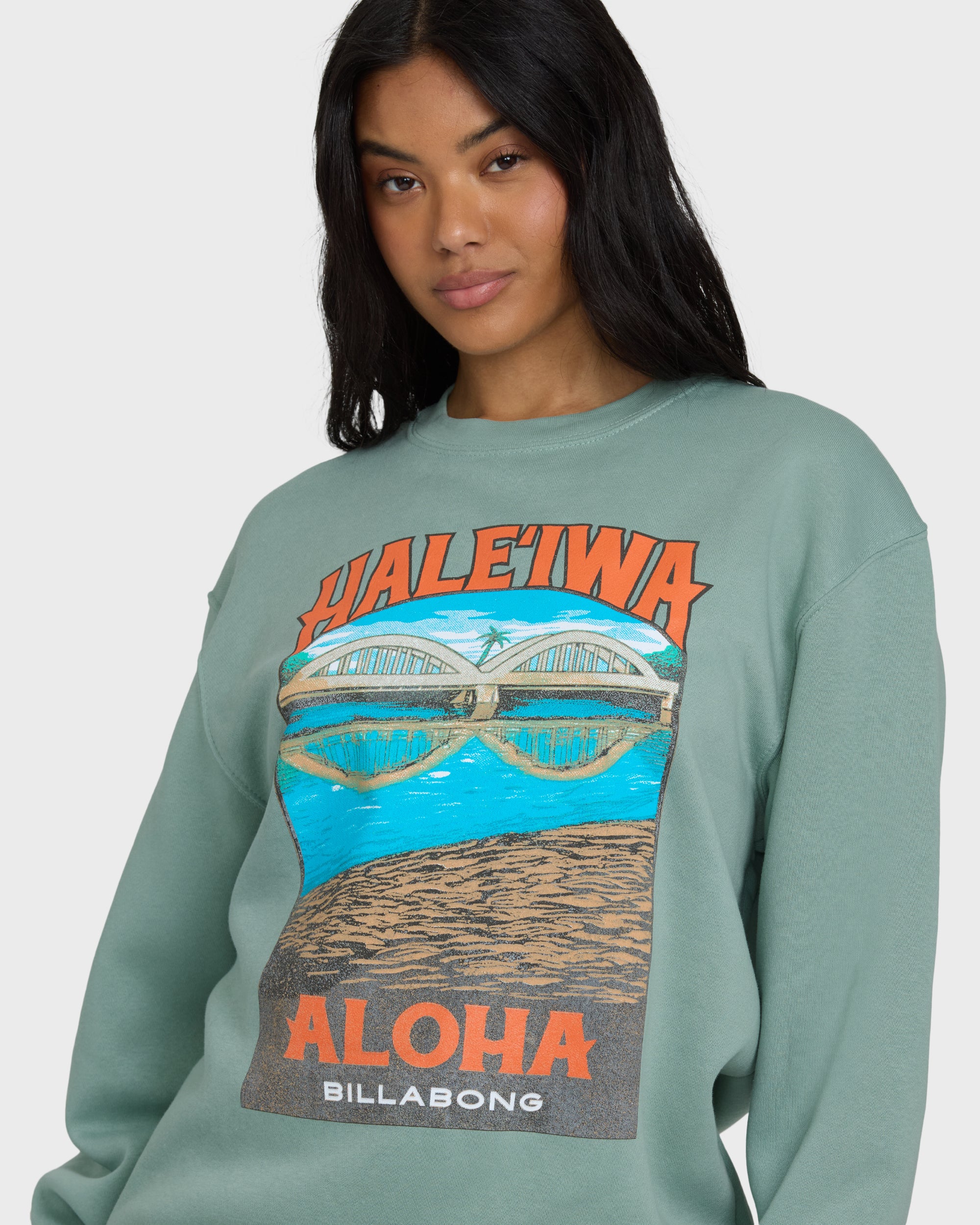 Haleiwa Scenic Poster Crewneck Sweatshirt - Sea Glass