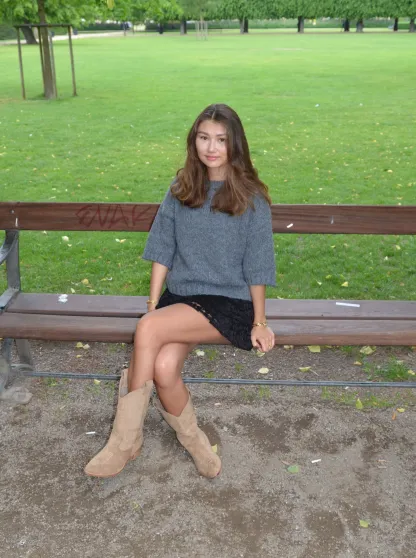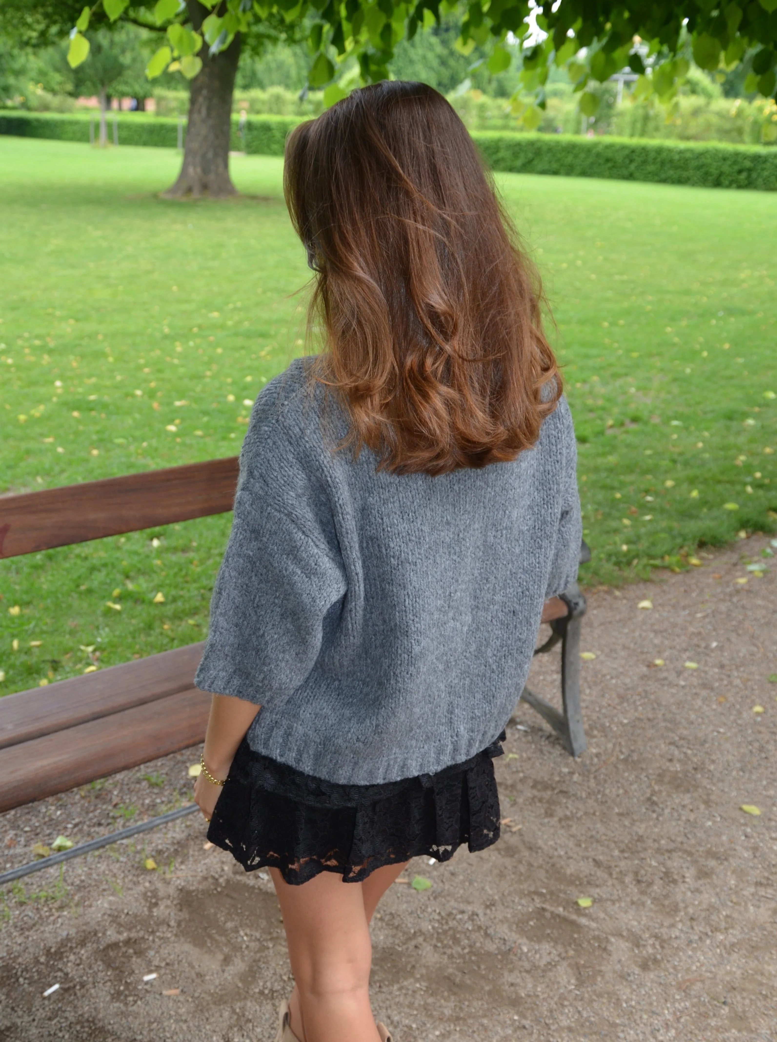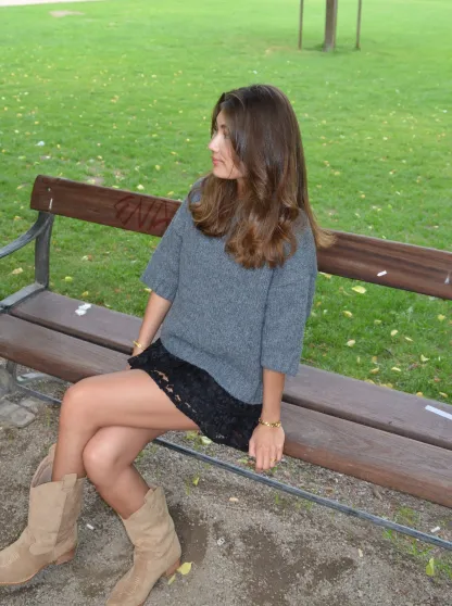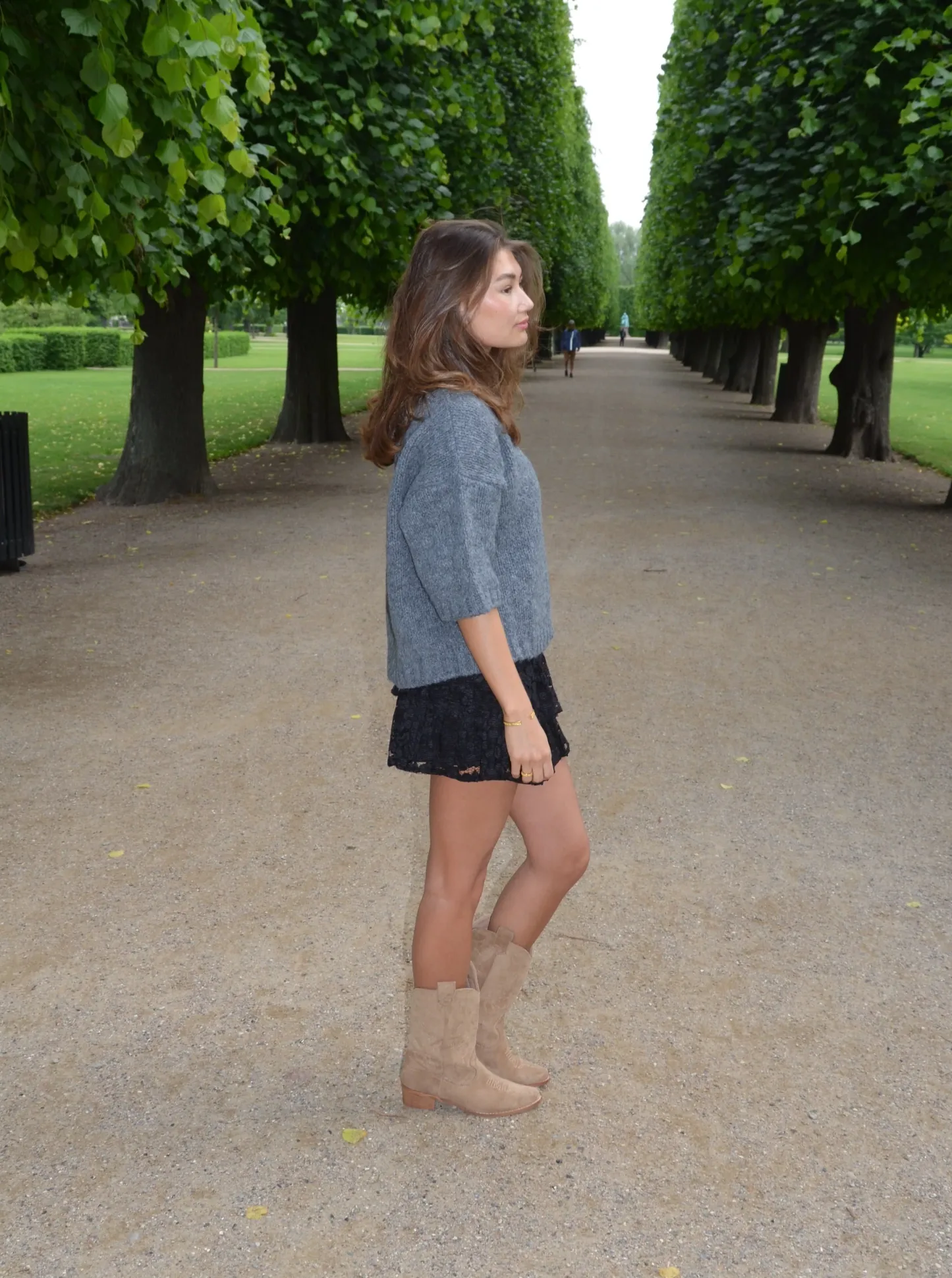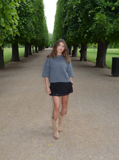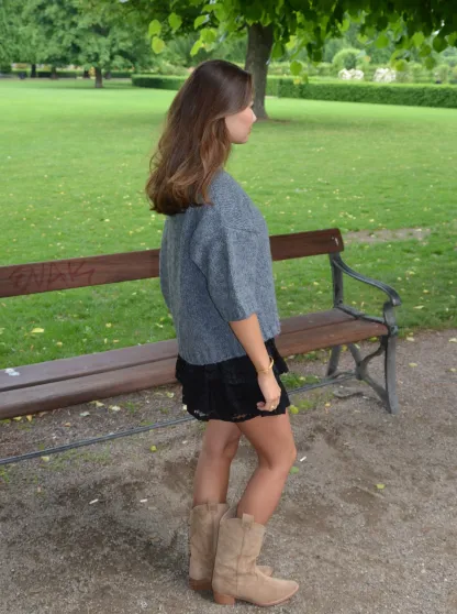 This knit jumper has short sleeves and a loose fit. It is made of the softest knit material and has ribbed edges.