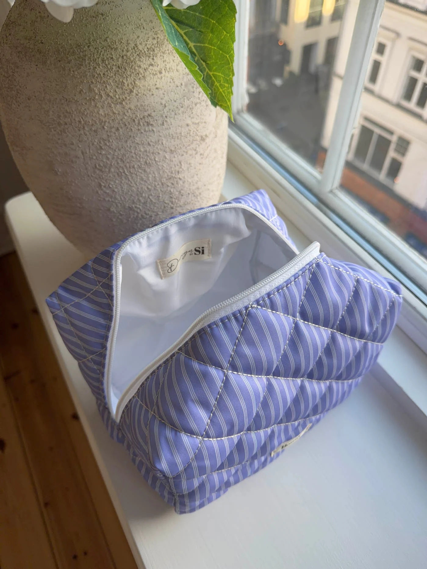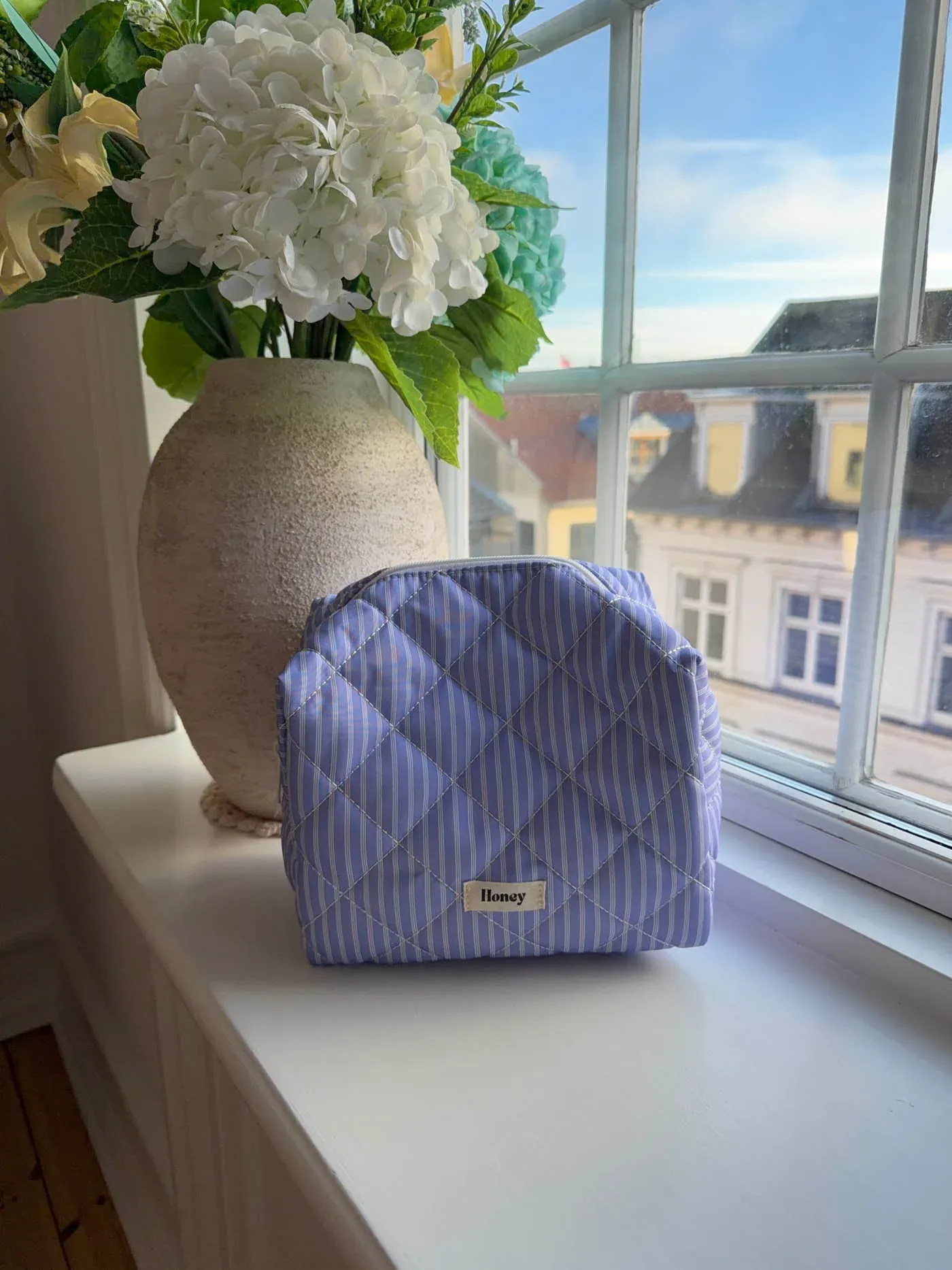 Honey large toiletry bag with stripes - Blue/white