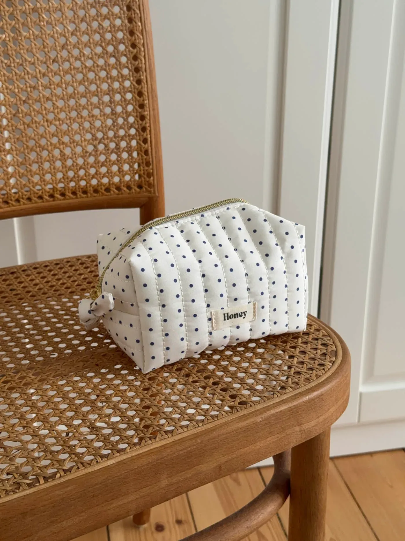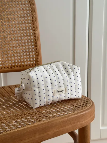 Honey small toiletry bag with dots - White/navy