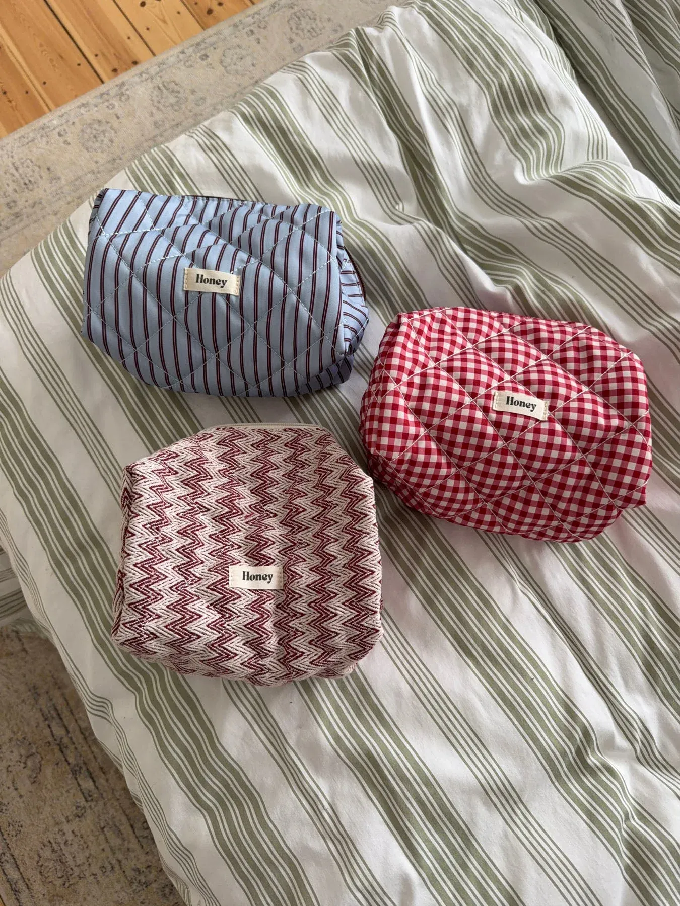 Here is the perfect small toiletry bag for your beauty products. It is ideal for storing everything from makeup and skincare to small personal essentials. With its soft and charming design, it will quickly become your go-to item that you can take with you anywhere. The toiletry bag closes with a zipper.