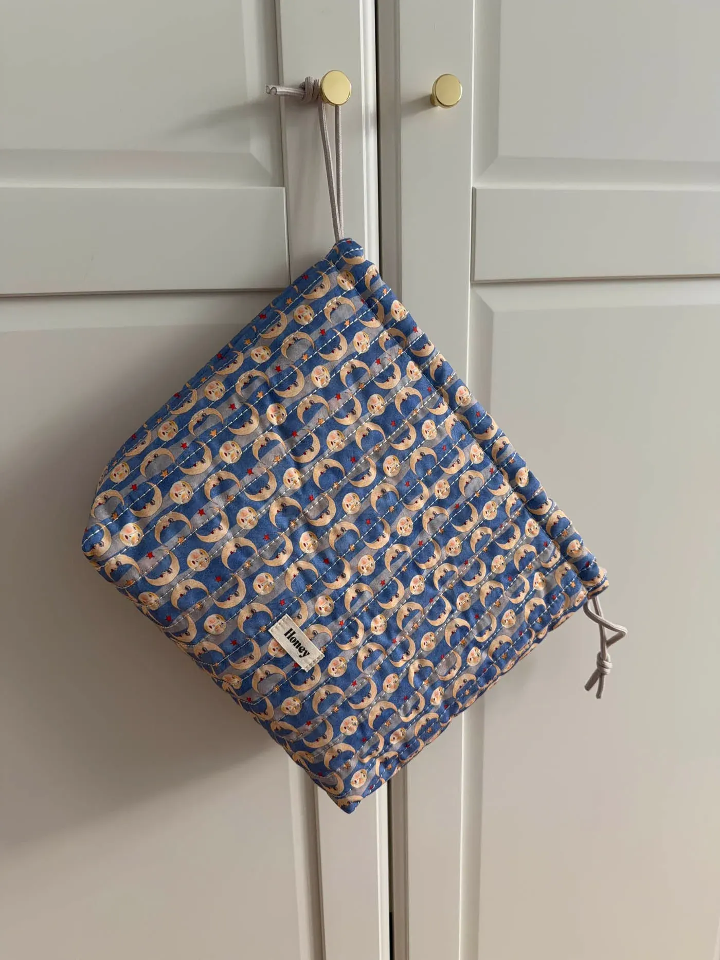 Honey toiletry bag with sun and moon print - Blue/yellow