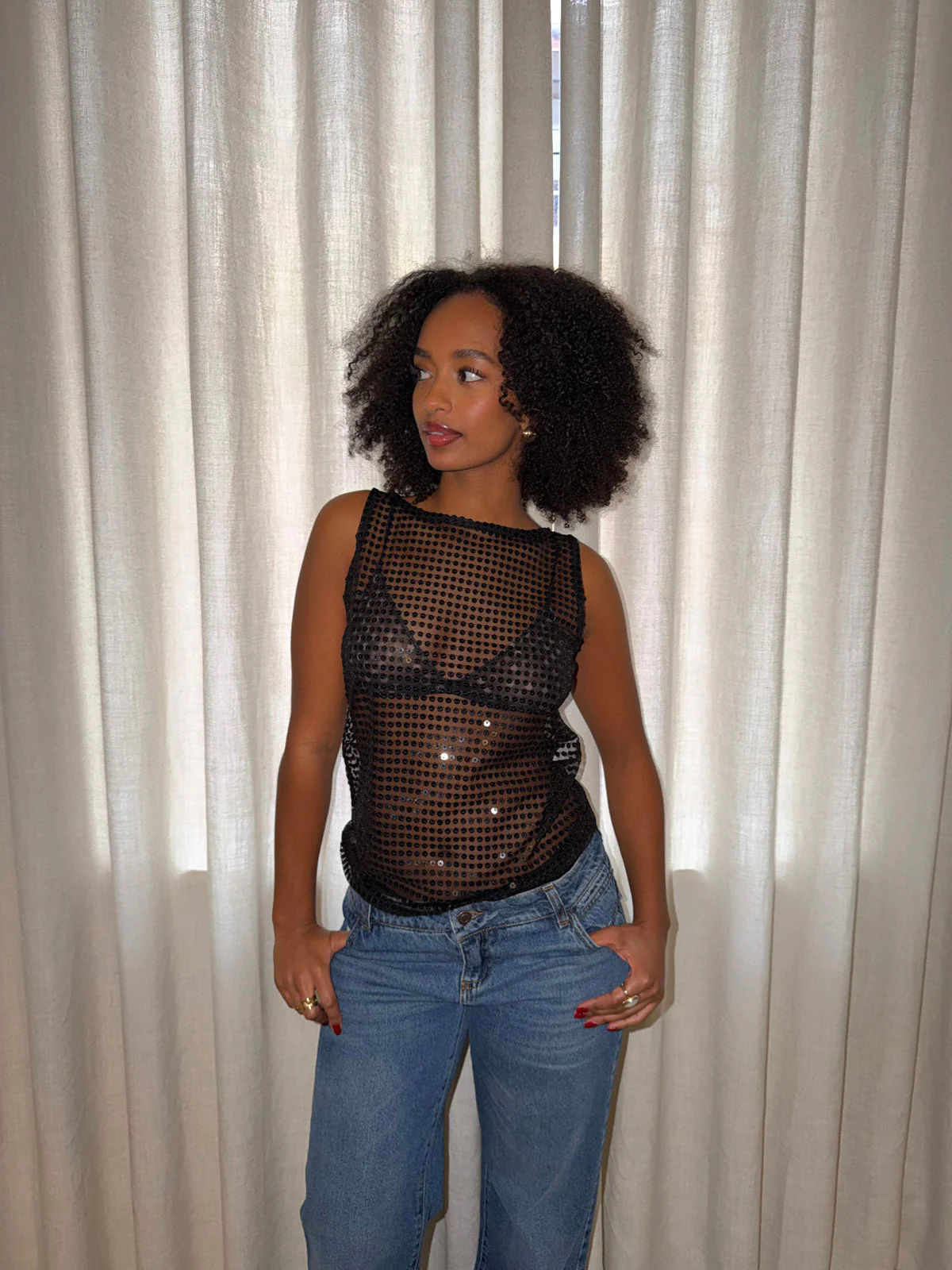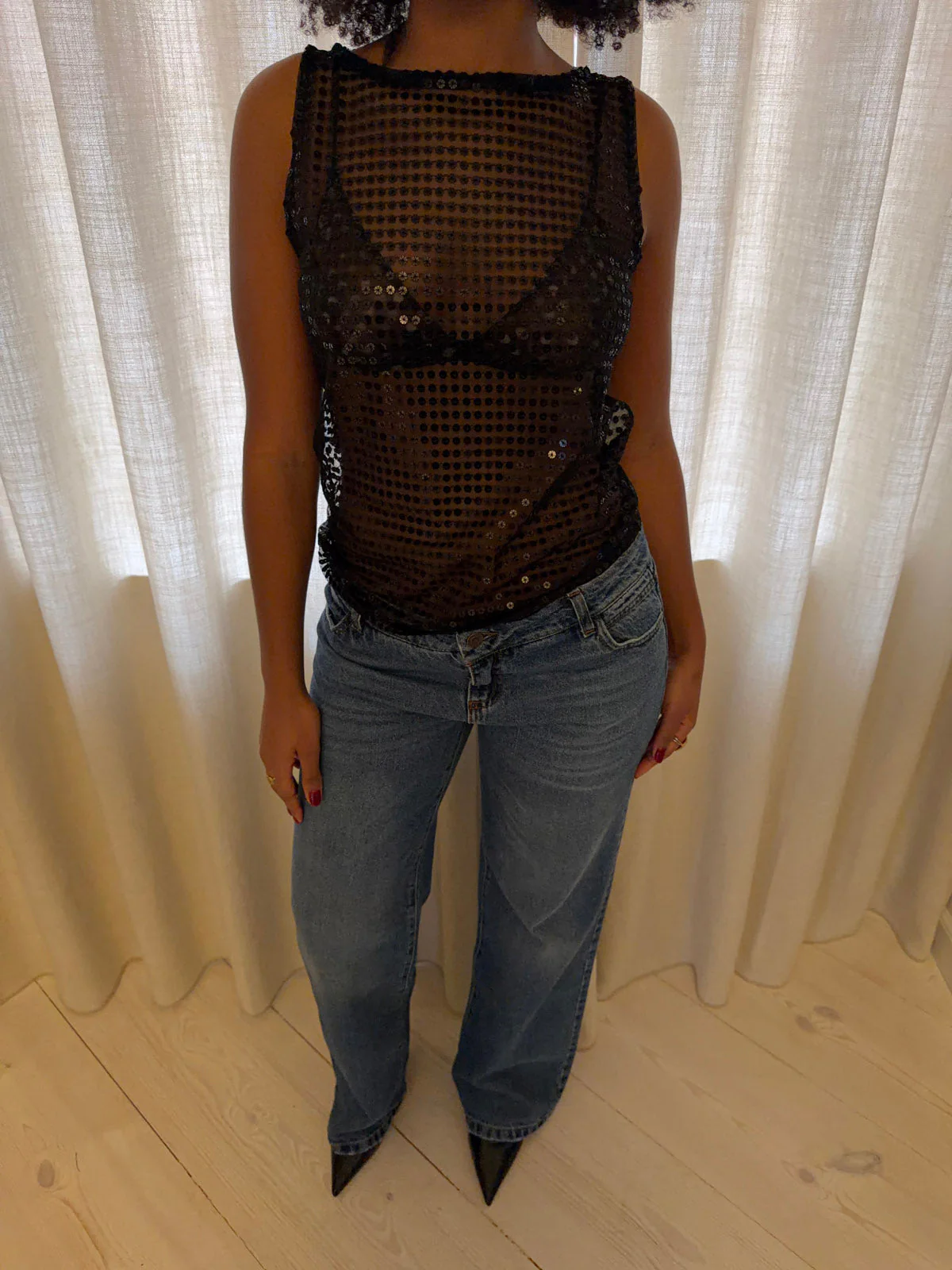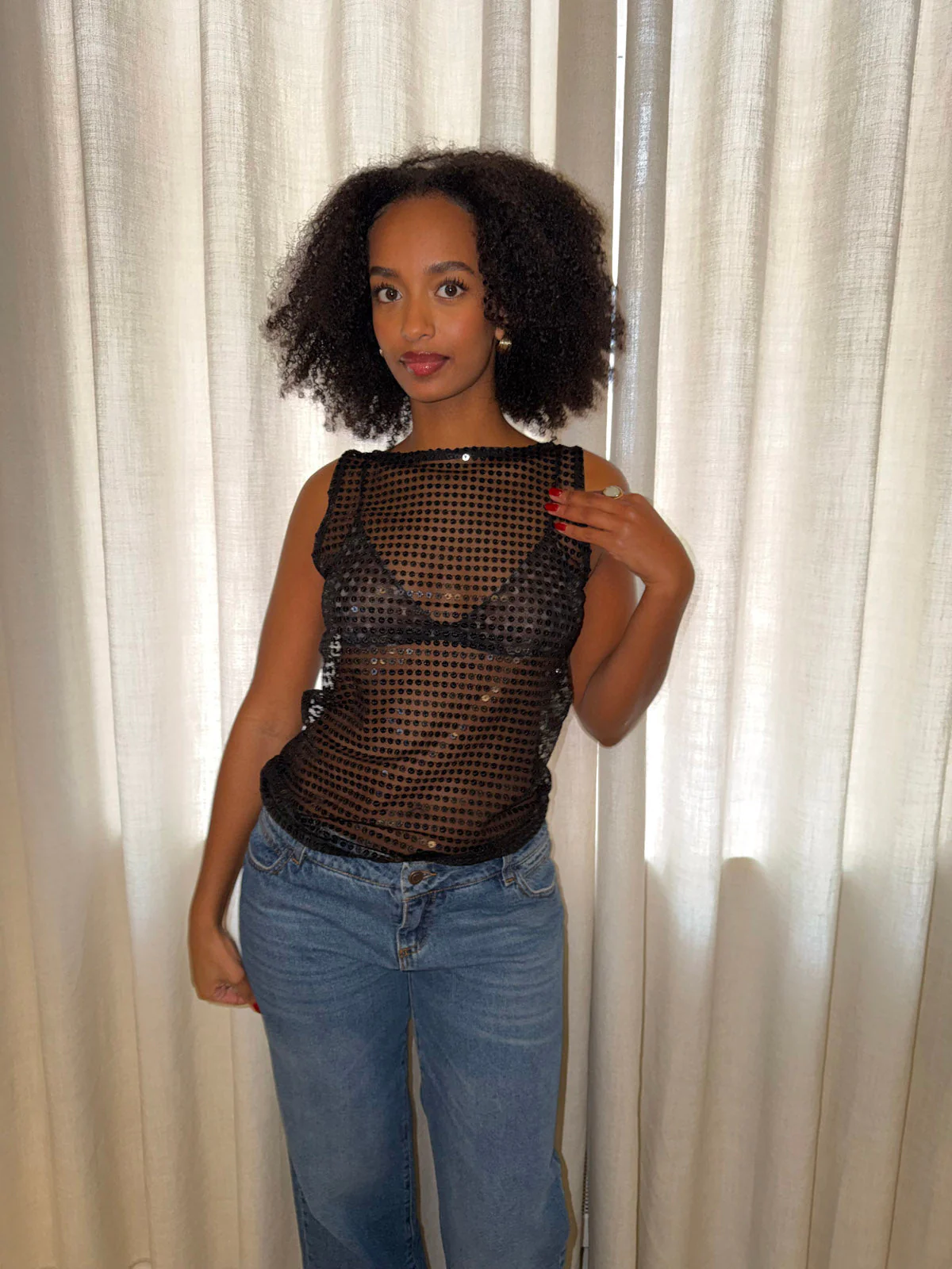 Our sequin top is perfect for festive occasions. It features a loose fit that drapes beautifully on the body, creating a sparkling, celebratory look. Ideal for adding a touch of glamour to your party outfit.
