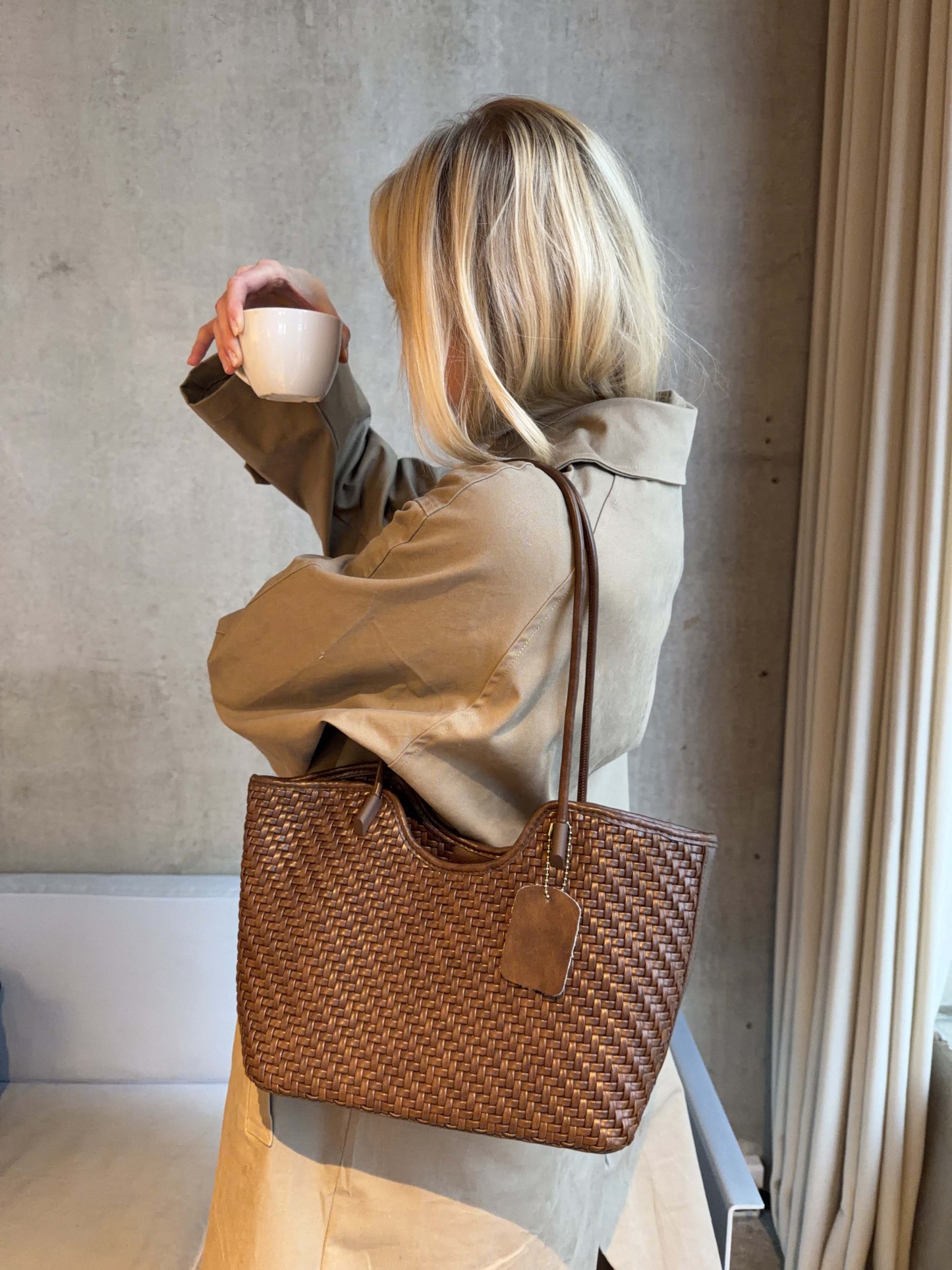 This woven brown tote bag is perfect for anyone who loves a clean, stylish look, but still wants a bag that stands out in a cool way. The woven pattern gives it a luxurious vibe, while the warm brown color makes it super easy to match with school outfits, café looks, and even night-out styles.