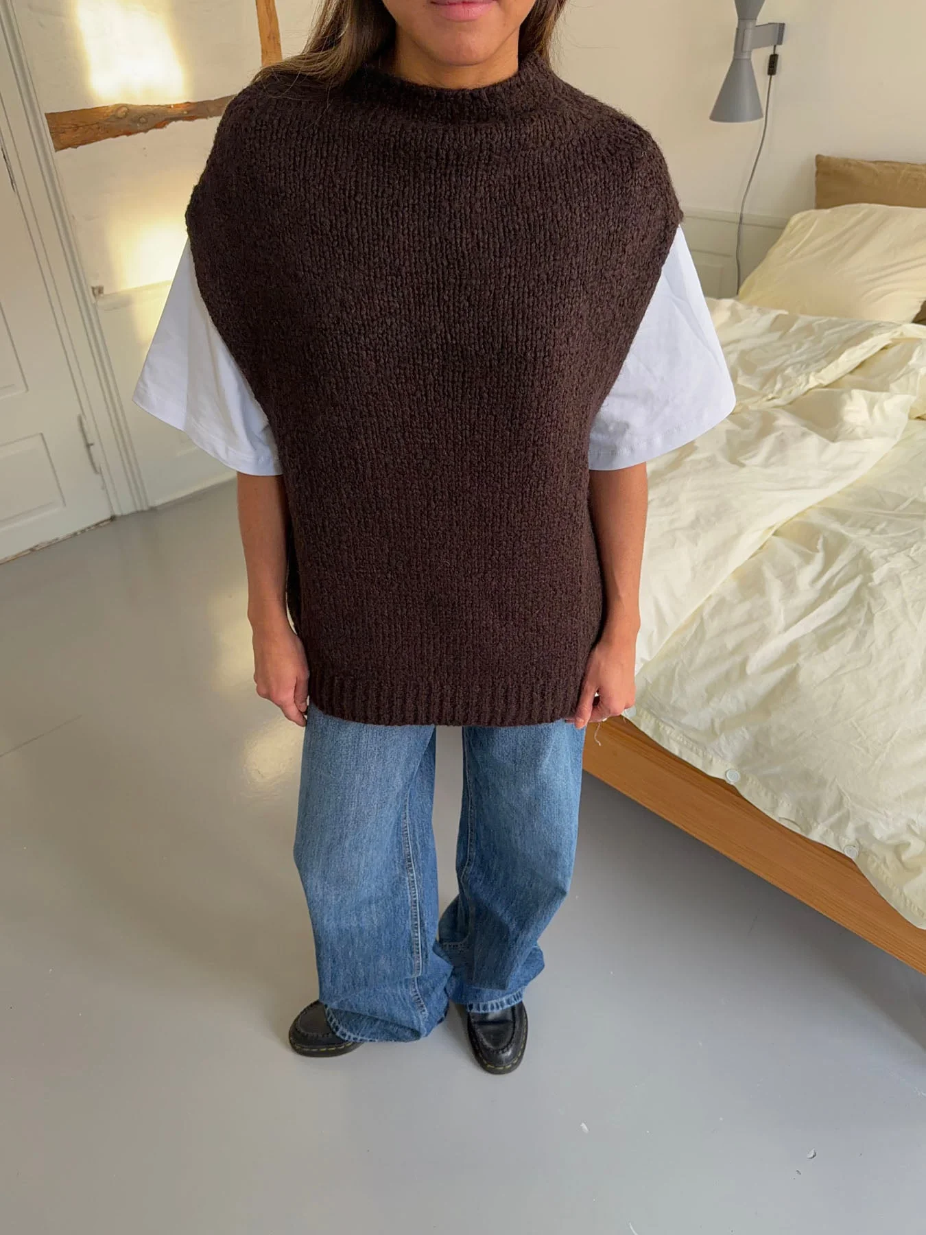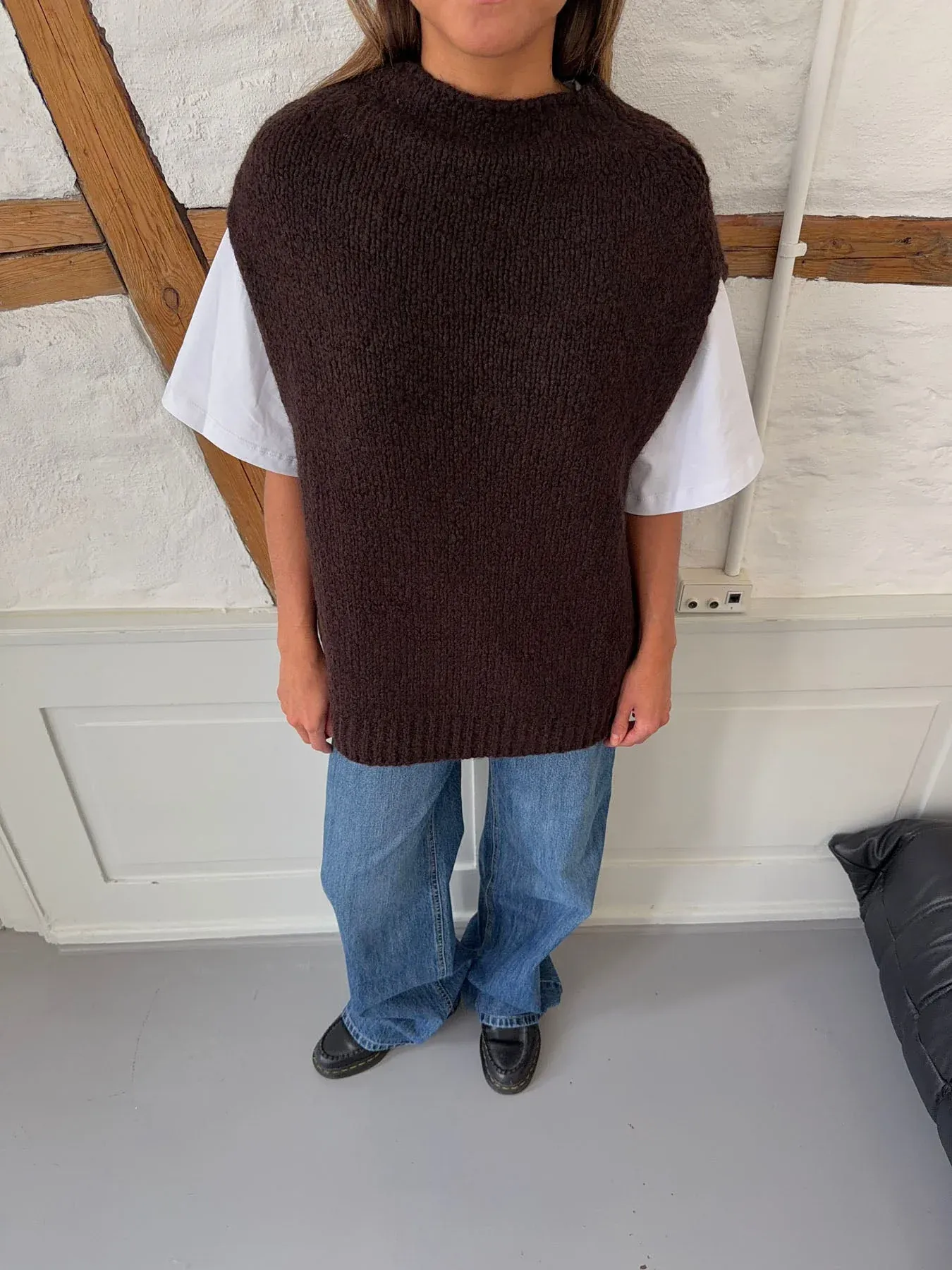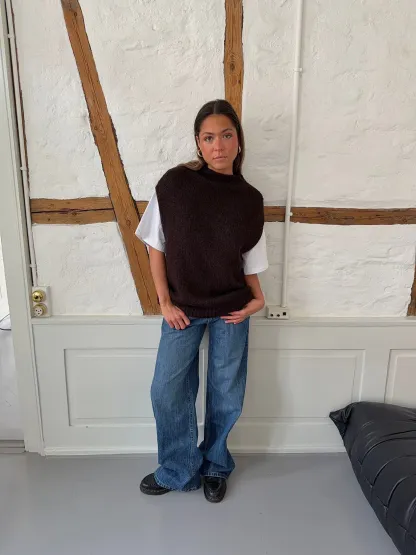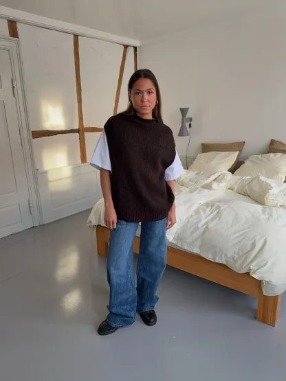 Kahula knitted vest with t-shirt - Brown/white