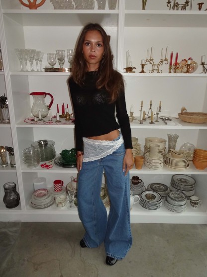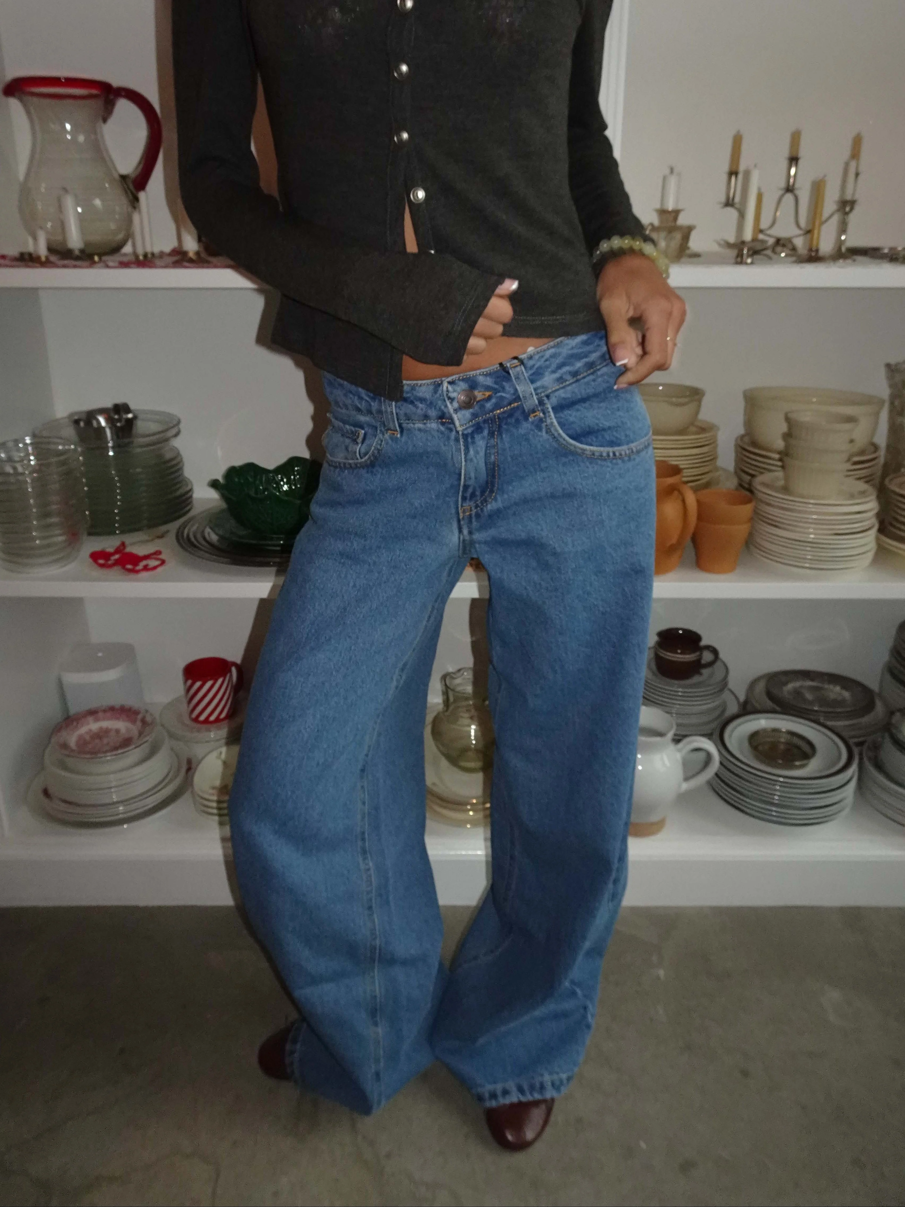 These timeless jeans in a medium-blue wash are crafted from durable cotton denim with a subtle vintage feel. The high waist and straight legs create a flattering silhouette that balances classic and modern style. The pronounced contrast stitching and five-pocket design give them an authentic look, while the sturdy fabric molds beautifully to your body over time. Wear them with anything from a knit sweater to a crisp shirt for an effortless and stylish look — the everyday essential jeans that never go out of style.