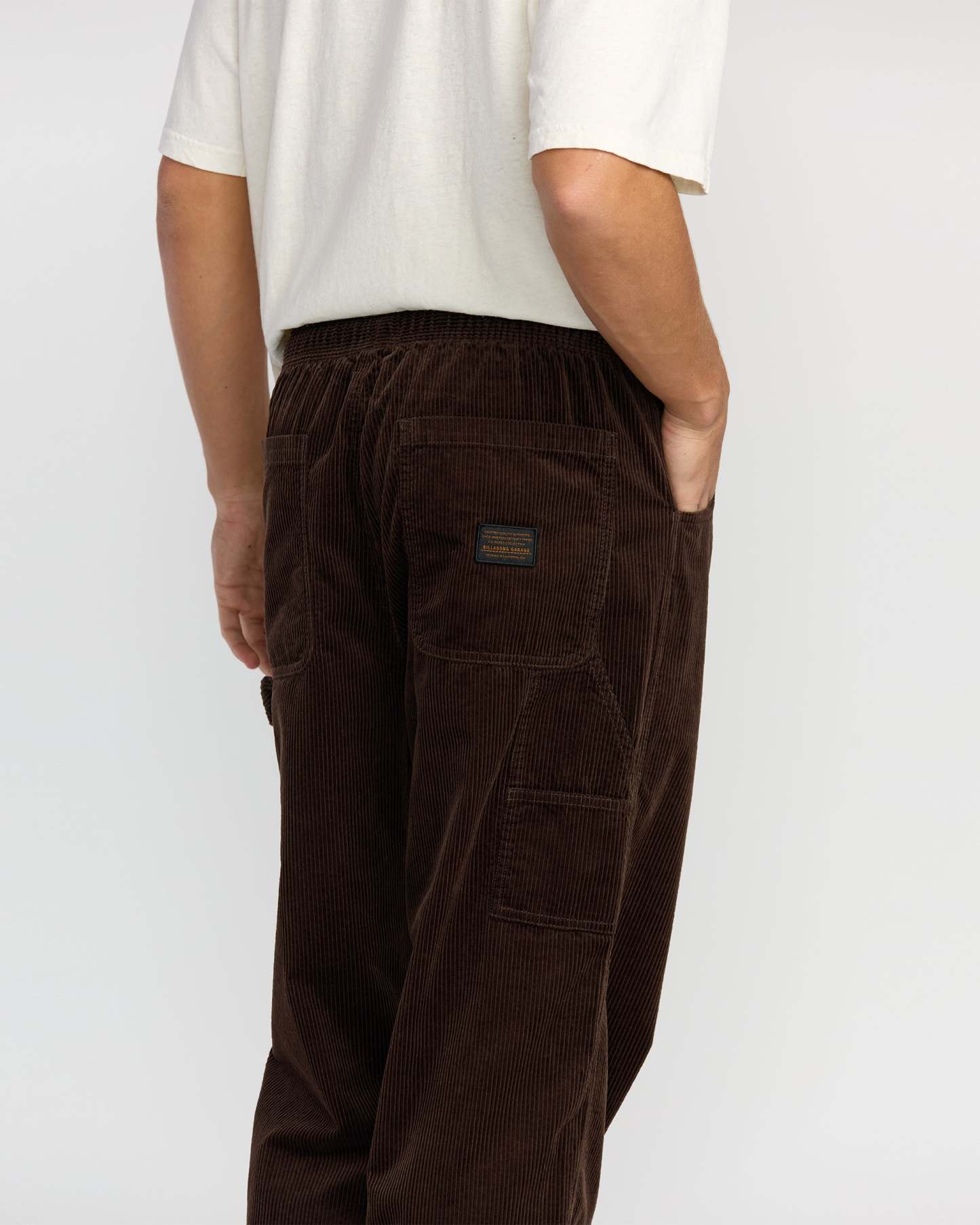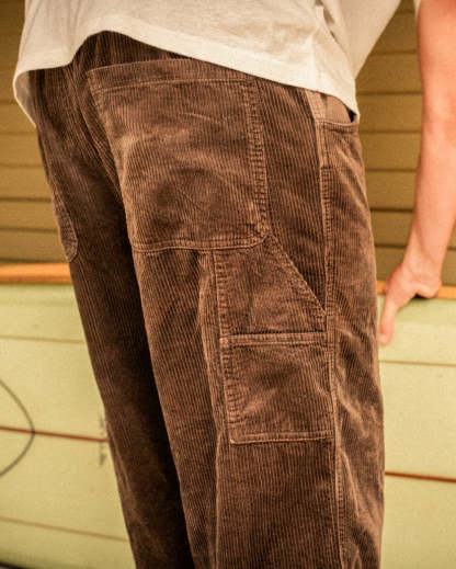 Our corduroy garage pants blend utility and comfort with a relaxed straight fit and elastic drawcord waist. Multiple pockets, including a tool loop and patch pockets, keep your essentials close at hand. Featured here in the Brown colorway.