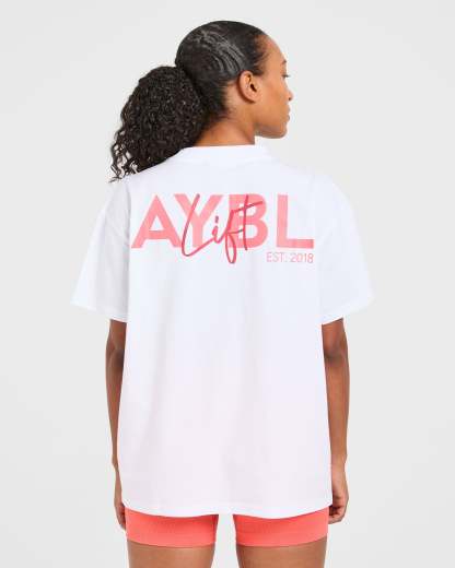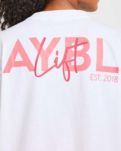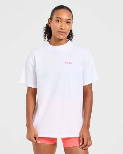 Lift Graphic Oversized T Shirt - White/Coral Peach