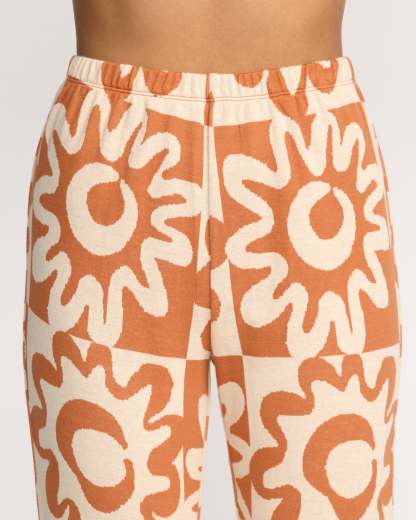 Our cotton jacquard knit pants blend retro style with modern comfort. The high-waisted silhouette and slight flare create a flattering look, while the elastic waistband keeps things effortlessly easy. Featured here in the Orange colorway.