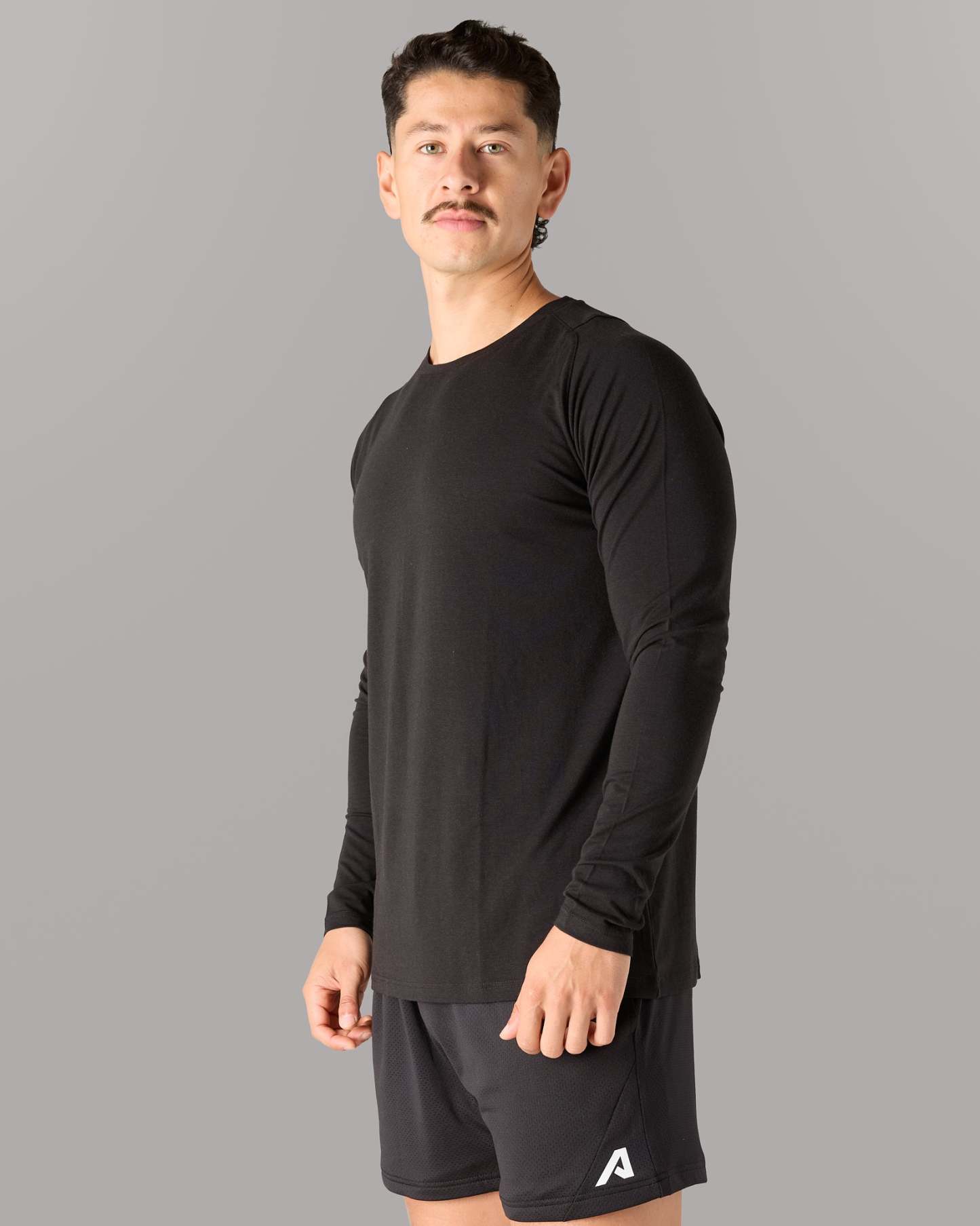 The Essential Long Sleeve Tee is designed for versatile, all-day comfort. Made from a thoughtfully blended lifestyle fabric that combines viscose, cotton, acrylic, and elastane, it delivers a soft hand-feel, breathable structure, and light stretch for easy movement.