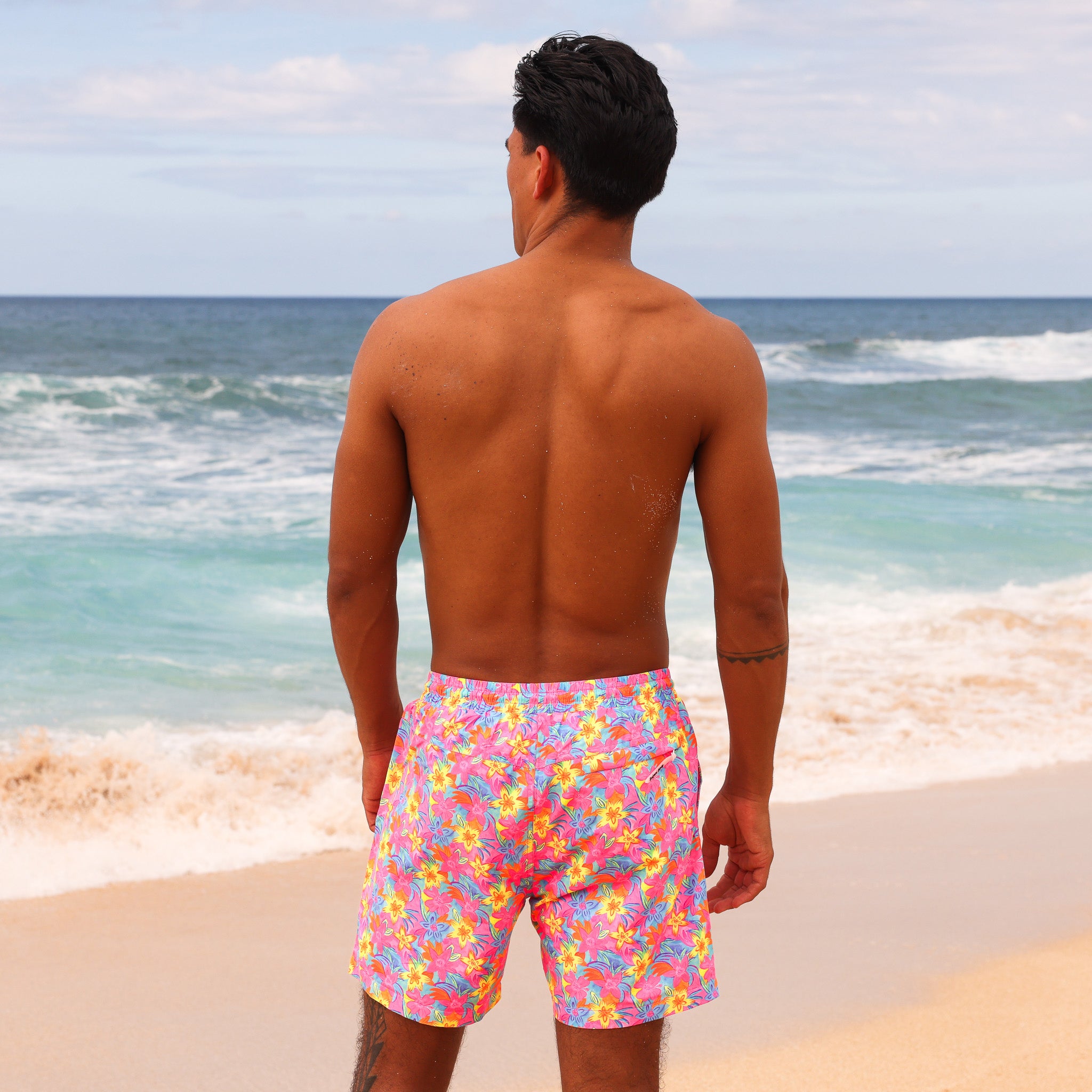Our Men's Swim Shorts are designed for ultimate comfort and style both on and off the beach. Crafted from our signature fast-drying 'beach peach' polyester fabric, these board shorts have a soft and silky finish for a relaxed, straight fit.