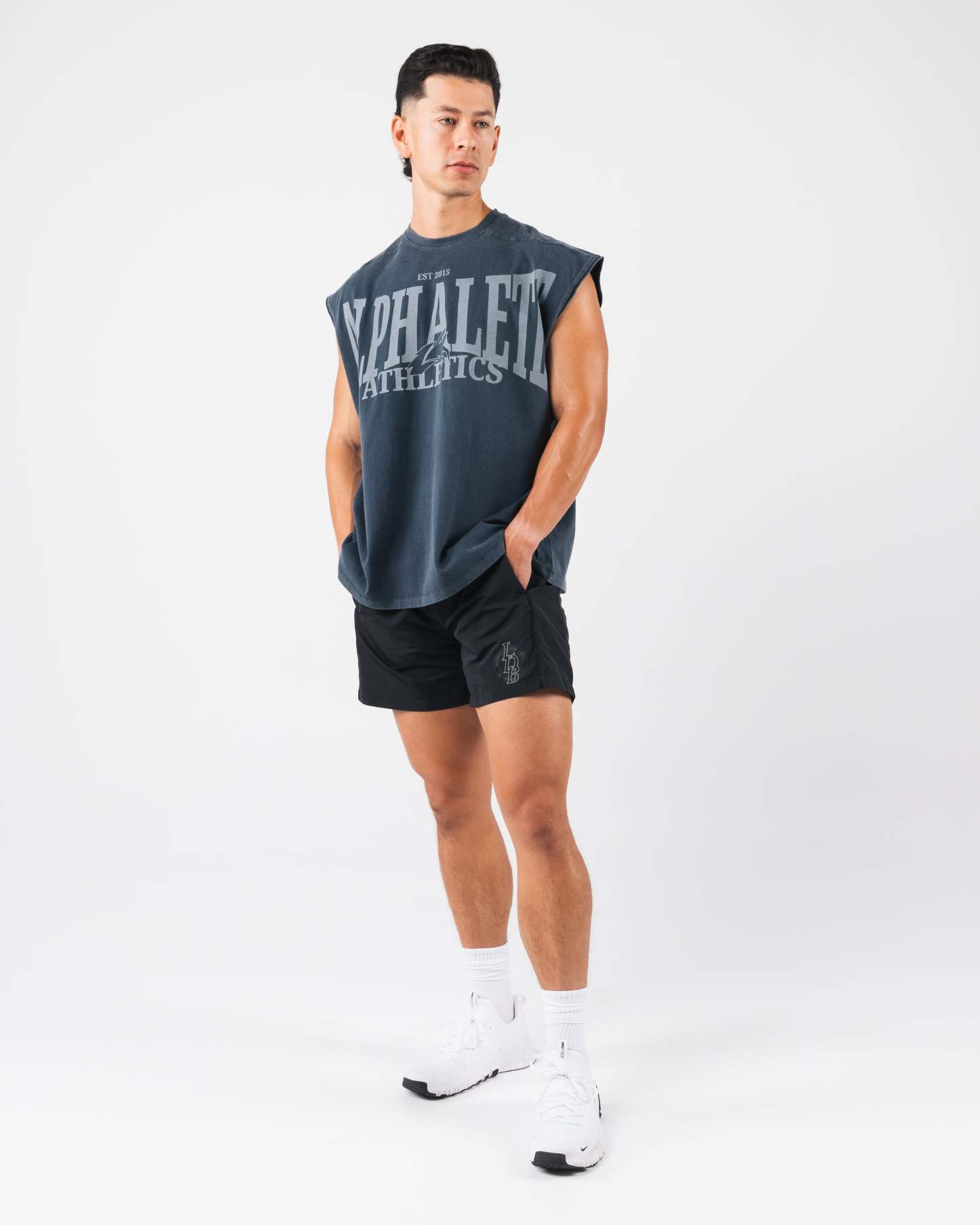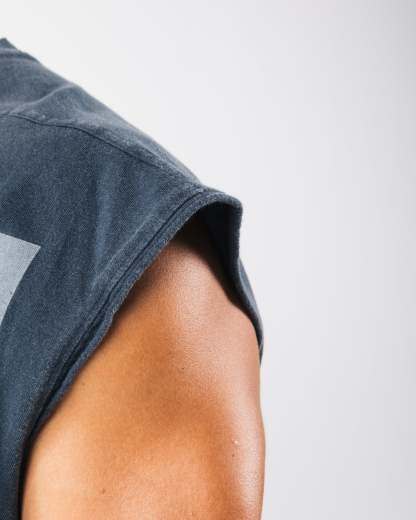 We’ve re-imagined a cut off through new fabric, proportions and garment dyeing. Our tank top offers sublimated branding on the front chest and features a low shoulder seam to enhance the traps. The wash treatment offers a nostalgic bodybuilding feeling while maintaining the original intention of the design which is to serve you on your fitness journey.