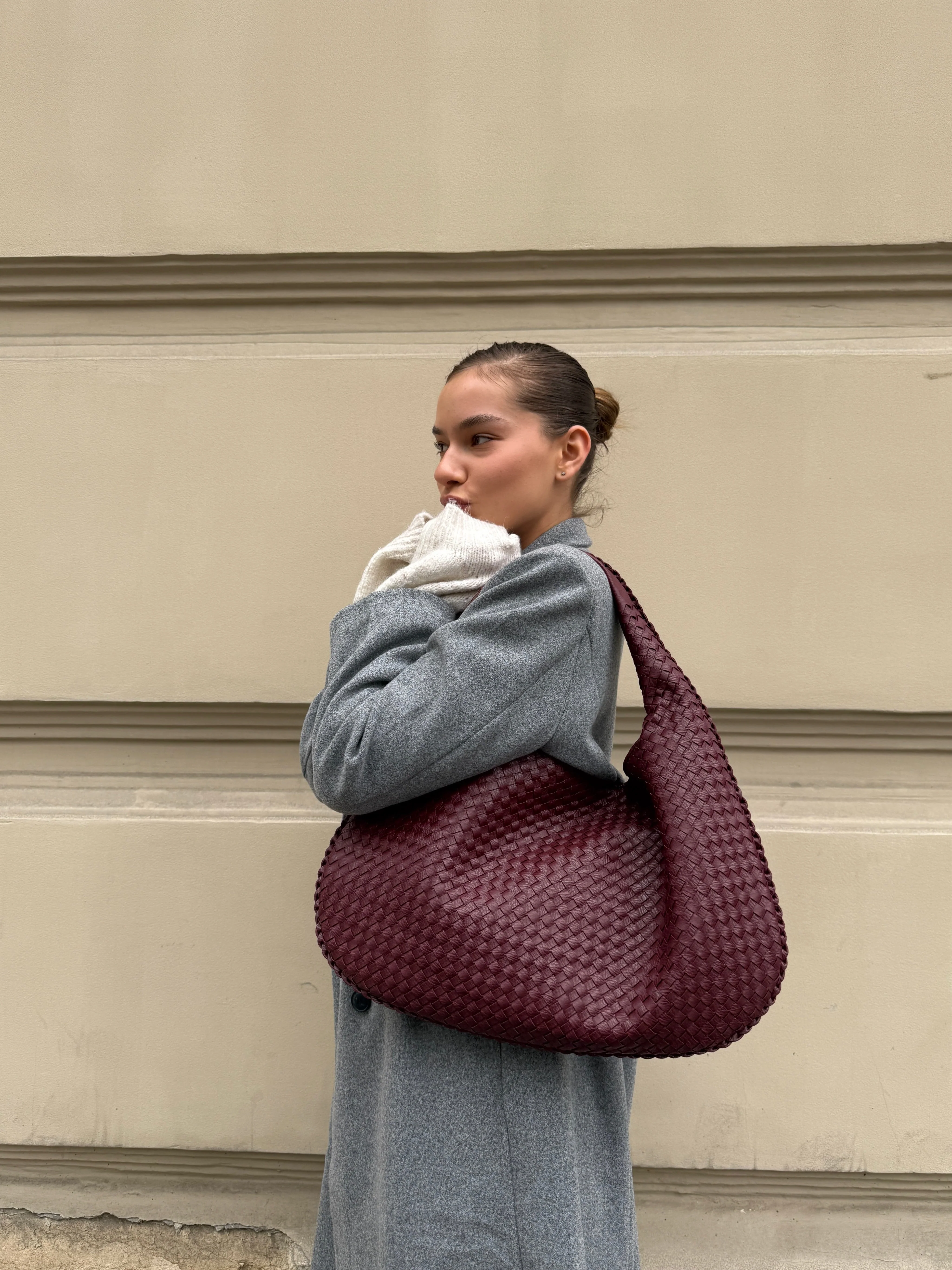 Your new GO-TO everyday bag. Our Musthave shoulder bag has a round shape and a woven/braided design. The bag has a large main compartment with zip closure, and two smaller compartments with zip inside the bag and a small open pocket. The must-have bag is very roomy, and can even fit a Macbook 13" inside.